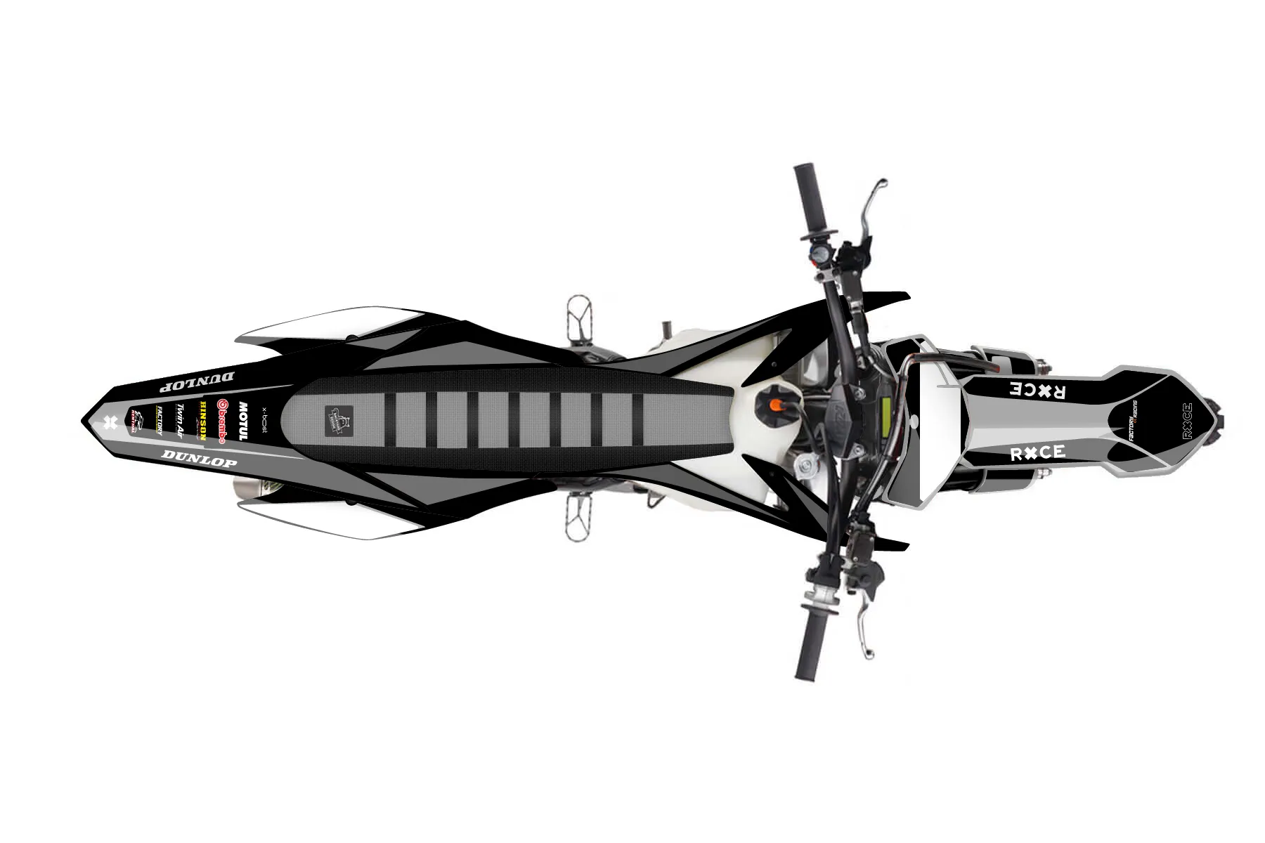 «Transworld» — готовый комплект графики серии Flow для KTM MX Graphic Kit KTM SX-F 250 2015. В комплекте: графика на бак и боковые облицовки, крылья (переднее и заднее), передний щиток, номерные таблички, защита вилки. Материал: ПВХ-винил 80 мкр с холодной ламинацией 300 мкр, общая толщина 380 мкр; покрытие глянцевое или матовое на выбор. Устойчив к UV-излучению, воде, бензину и мойке высокого давления. Клей акриловый на сольвентной основе — постоянный, для гибких пластиков. На простых поверхностях монтируется без нагрева; для сложных изгибов рекомендуем фен. Этот пресет можно заказать как есть или взять за основу в конструкторе: поменять цвета, добавить стартовый номер и свой бренд. Производство — 3–5 рабочих дней, доставка по России СДЭКом или Почтой, по СНГ — курьерскими службами.