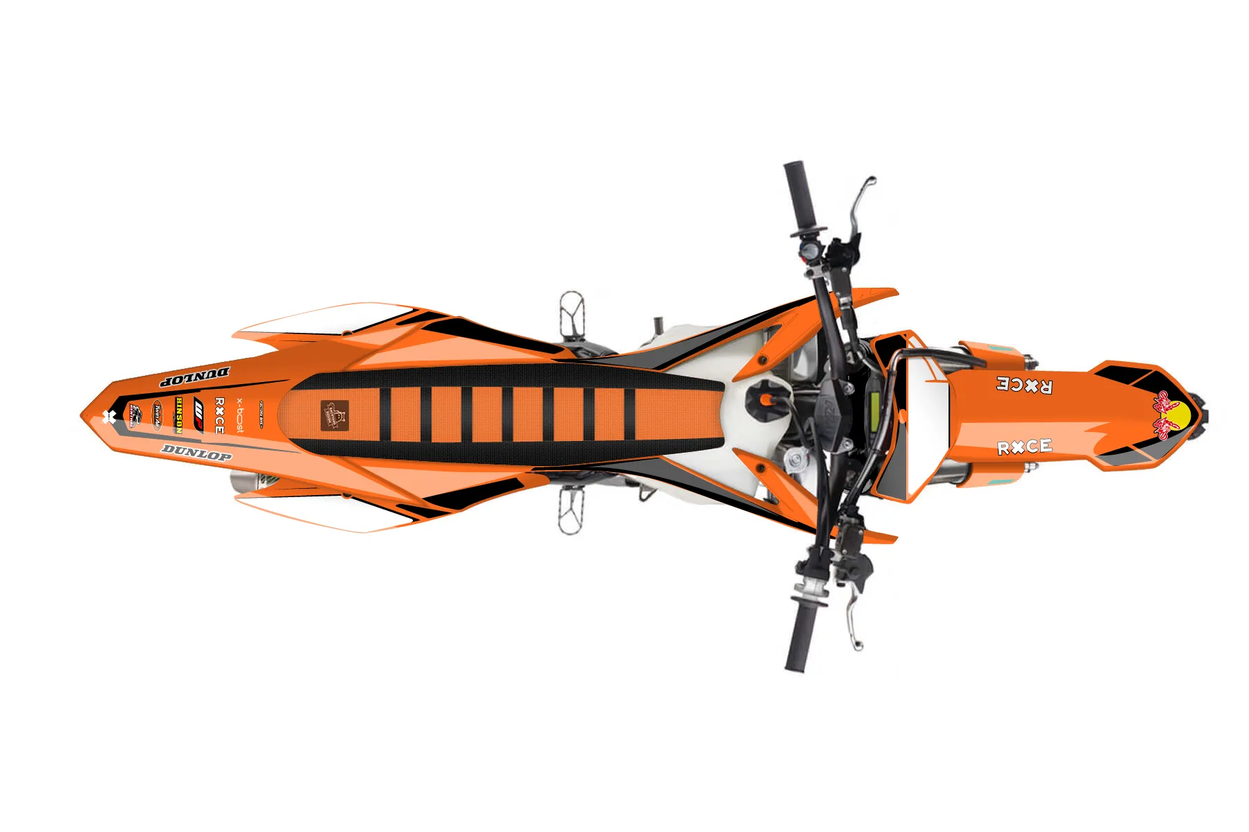 «Vintage» — готовый комплект графики серии Flow для KTM MX Graphic Kit KTM SX-F 250 2015. В комплекте: графика на бак и боковые облицовки, крылья (переднее и заднее), передний щиток, номерные таблички, защита вилки. Материал: ПВХ-винил 80 мкр с холодной ламинацией 300 мкр, общая толщина 380 мкр; покрытие глянцевое или матовое на выбор. Устойчив к UV-излучению, воде, бензину и мойке высокого давления. Клей акриловый на сольвентной основе — постоянный, для гибких пластиков. На простых поверхностях монтируется без нагрева; для сложных изгибов рекомендуем фен. Этот пресет можно заказать как есть или взять за основу в конструкторе: поменять цвета, добавить стартовый номер и свой бренд. Производство — 3–5 рабочих дней, доставка по России СДЭКом или Почтой, по СНГ — курьерскими службами.