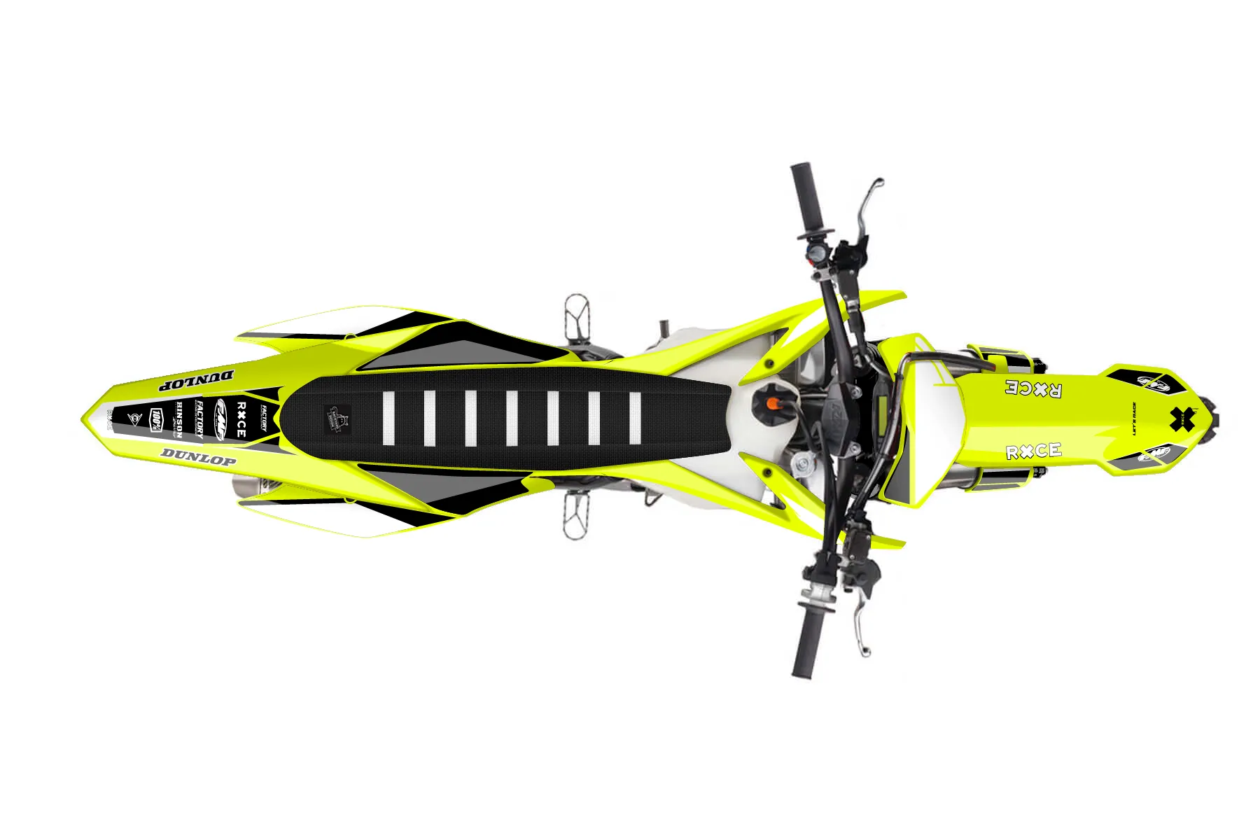 «Bright Neon» — готовый комплект графики серии Maverick для KTM MX Graphic Kit KTM SX-F 250 2015. В комплекте: графика на бак и боковые облицовки, крылья (переднее и заднее), передний щиток, номерные таблички, защита вилки. Материал: ПВХ-винил 80 мкр с холодной ламинацией 300 мкр, общая толщина 380 мкр; покрытие глянцевое или матовое на выбор. Устойчив к UV-излучению, воде, бензину и мойке высокого давления. Клей акриловый на сольвентной основе — постоянный, для гибких пластиков. На простых поверхностях монтируется без нагрева; для сложных изгибов рекомендуем фен. Этот пресет можно заказать как есть или взять за основу в конструкторе: поменять цвета, добавить стартовый номер и свой бренд. Производство — 3–5 рабочих дней, доставка по России СДЭКом или Почтой, по СНГ — курьерскими службами.