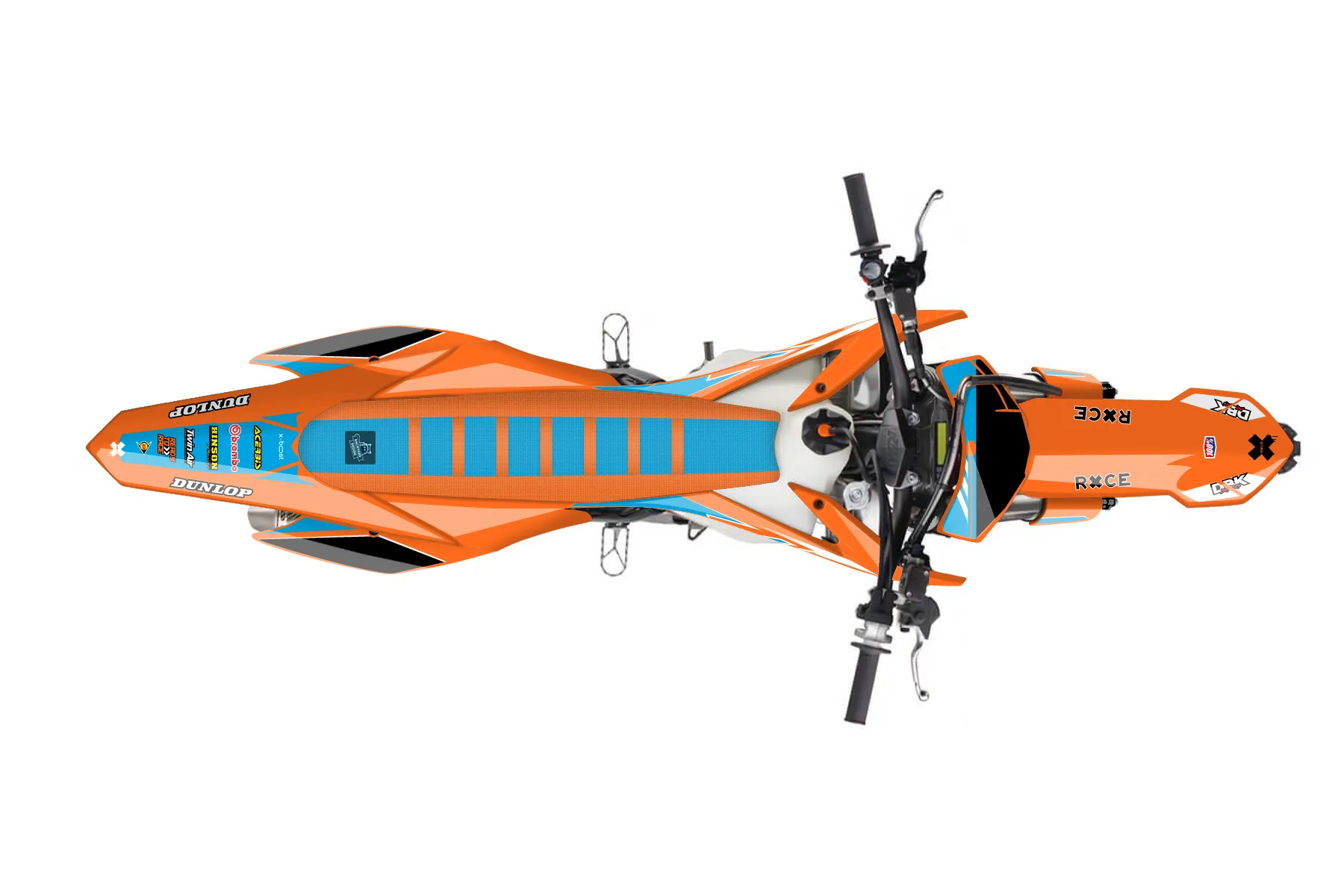 «Coach» — готовый комплект графики серии Maverick для KTM MX Graphic Kit KTM SX-F 250 2015. В комплекте: графика на бак и боковые облицовки, крылья (переднее и заднее), передний щиток, номерные таблички, защита вилки. Материал: ПВХ-винил 80 мкр с холодной ламинацией 300 мкр, общая толщина 380 мкр; покрытие глянцевое или матовое на выбор. Устойчив к UV-излучению, воде, бензину и мойке высокого давления. Клей акриловый на сольвентной основе — постоянный, для гибких пластиков. На простых поверхностях монтируется без нагрева; для сложных изгибов рекомендуем фен. Этот пресет можно заказать как есть или взять за основу в конструкторе: поменять цвета, добавить стартовый номер и свой бренд. Производство — 3–5 рабочих дней, доставка по России СДЭКом или Почтой, по СНГ — курьерскими службами.