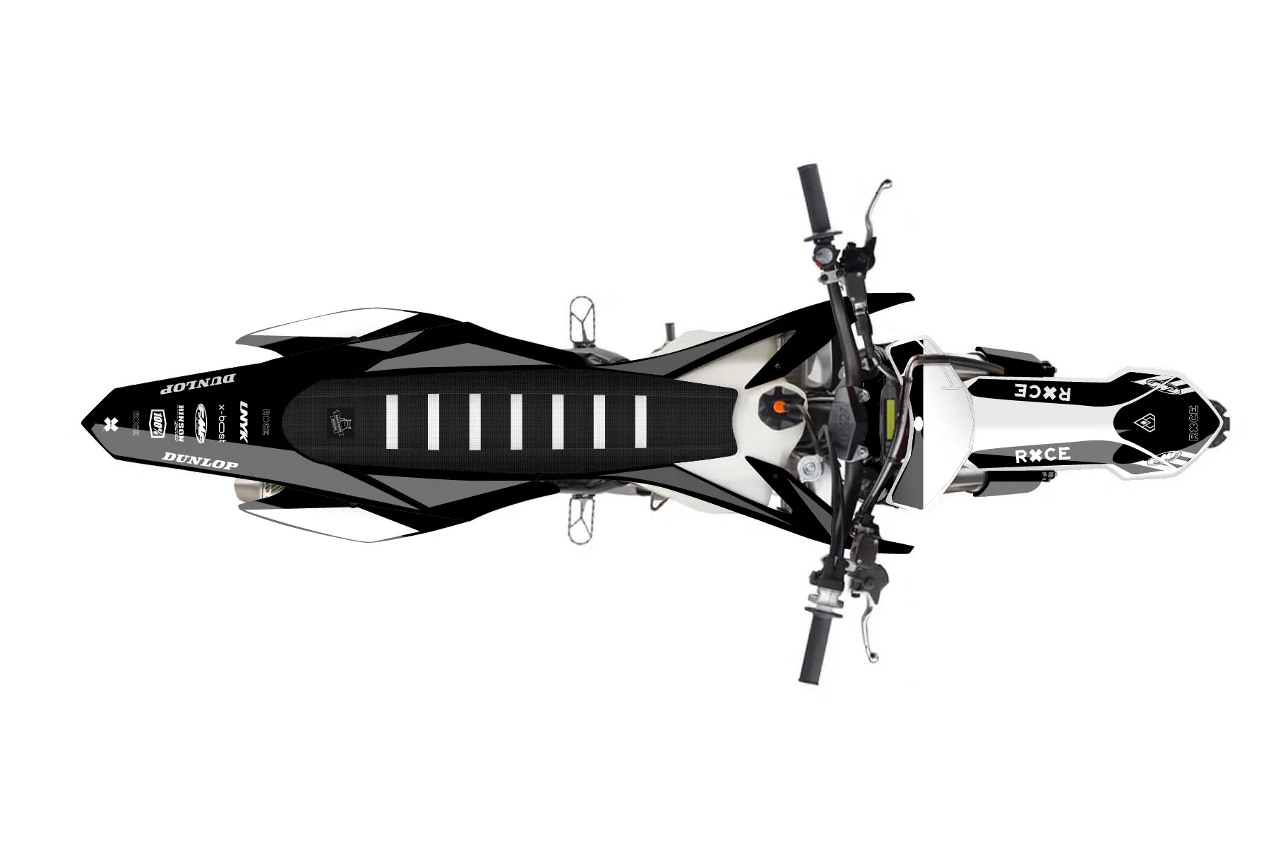 «DeCore» — готовый комплект графики серии Maverick для KTM MX Graphic Kit KTM SX-F 250 2015. В комплекте: графика на бак и боковые облицовки, крылья (переднее и заднее), передний щиток, номерные таблички, защита вилки. Материал: ПВХ-винил 80 мкр с холодной ламинацией 300 мкр, общая толщина 380 мкр; покрытие глянцевое или матовое на выбор. Устойчив к UV-излучению, воде, бензину и мойке высокого давления. Клей акриловый на сольвентной основе — постоянный, для гибких пластиков. На простых поверхностях монтируется без нагрева; для сложных изгибов рекомендуем фен. Этот пресет можно заказать как есть или взять за основу в конструкторе: поменять цвета, добавить стартовый номер и свой бренд. Производство — 3–5 рабочих дней, доставка по России СДЭКом или Почтой, по СНГ — курьерскими службами.