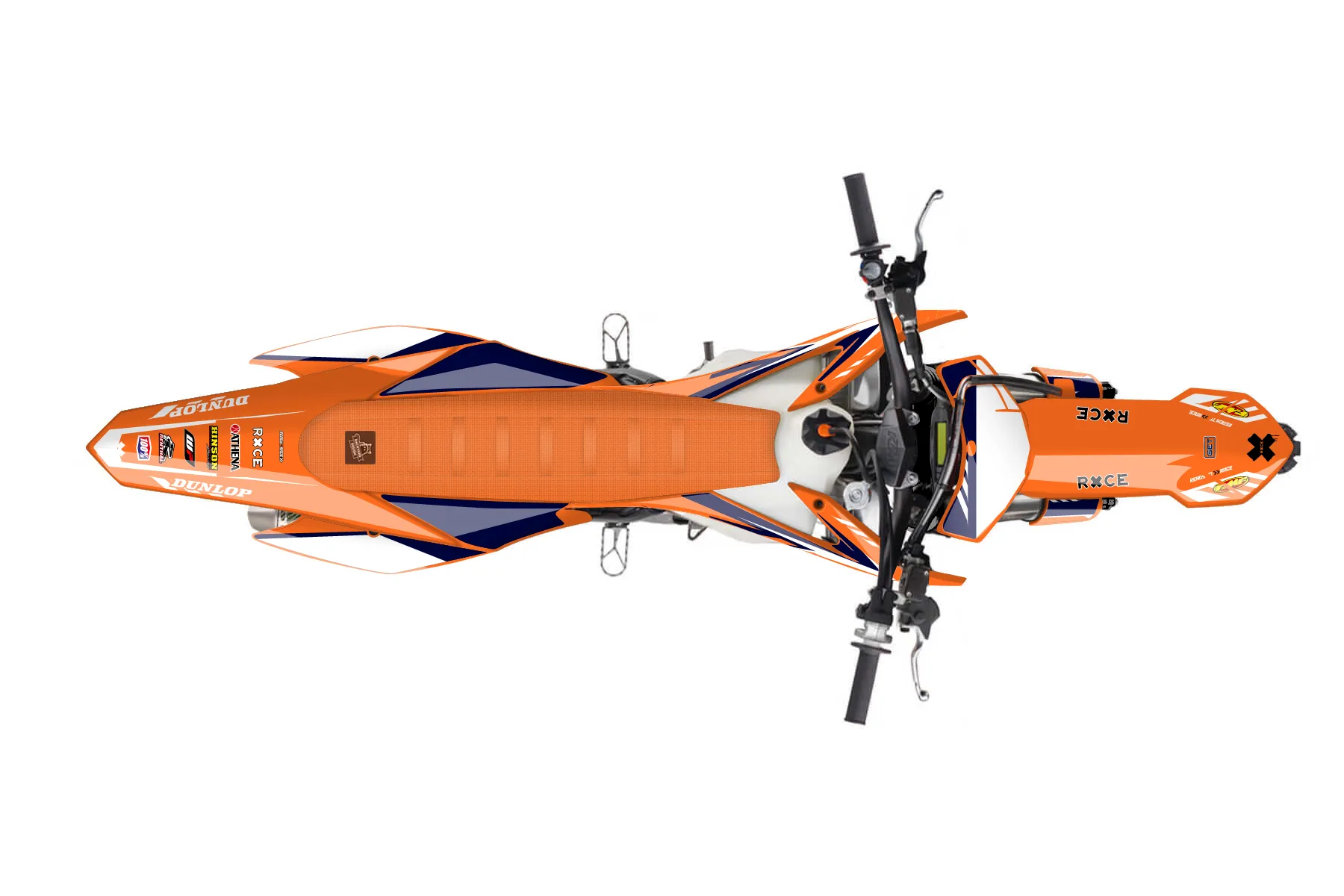 «Swift» — готовый комплект графики серии Maverick для KTM MX Graphic Kit KTM SX-F 250 2015. В комплекте: графика на бак и боковые облицовки, крылья (переднее и заднее), передний щиток, номерные таблички, защита вилки. Материал: ПВХ-винил 80 мкр с холодной ламинацией 300 мкр, общая толщина 380 мкр; покрытие глянцевое или матовое на выбор. Устойчив к UV-излучению, воде, бензину и мойке высокого давления. Клей акриловый на сольвентной основе — постоянный, для гибких пластиков. На простых поверхностях монтируется без нагрева; для сложных изгибов рекомендуем фен. Этот пресет можно заказать как есть или взять за основу в конструкторе: поменять цвета, добавить стартовый номер и свой бренд. Производство — 3–5 рабочих дней, доставка по России СДЭКом или Почтой, по СНГ — курьерскими службами.