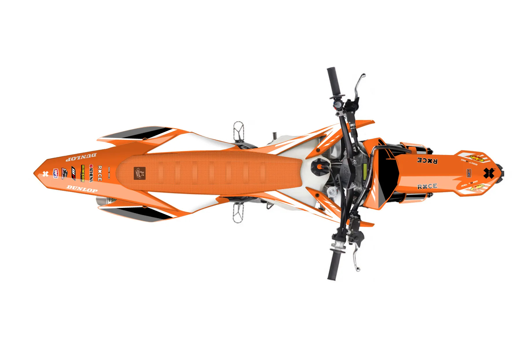 «Train» — готовый комплект графики серии Maverick для KTM MX Graphic Kit KTM SX-F 250 2015. В комплекте: графика на бак и боковые облицовки, крылья (переднее и заднее), передний щиток, номерные таблички, защита вилки. Материал: ПВХ-винил 80 мкр с холодной ламинацией 300 мкр, общая толщина 380 мкр; покрытие глянцевое или матовое на выбор. Устойчив к UV-излучению, воде, бензину и мойке высокого давления. Клей акриловый на сольвентной основе — постоянный, для гибких пластиков. На простых поверхностях монтируется без нагрева; для сложных изгибов рекомендуем фен. Этот пресет можно заказать как есть или взять за основу в конструкторе: поменять цвета, добавить стартовый номер и свой бренд. Производство — 3–5 рабочих дней, доставка по России СДЭКом или Почтой, по СНГ — курьерскими службами.