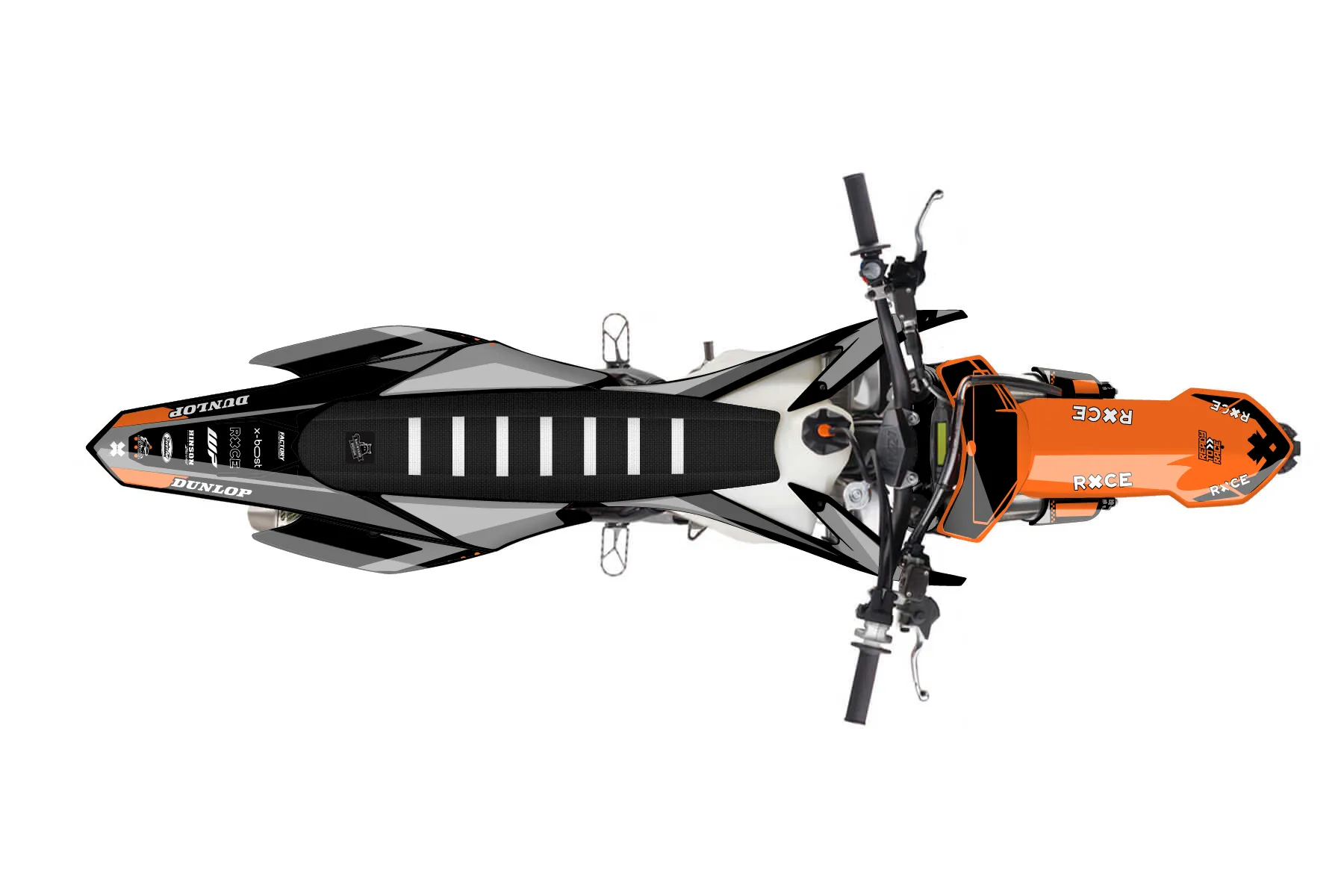 «Cape» — готовый комплект графики серии Staple для KTM MX Graphic Kit KTM SX-F 250 2015. В комплекте: графика на бак и боковые облицовки, крылья (переднее и заднее), передний щиток, номерные таблички, защита вилки. Материал: ПВХ-винил 80 мкр с холодной ламинацией 300 мкр, общая толщина 380 мкр; покрытие глянцевое или матовое на выбор. Устойчив к UV-излучению, воде, бензину и мойке высокого давления. Клей акриловый на сольвентной основе — постоянный, для гибких пластиков. На простых поверхностях монтируется без нагрева; для сложных изгибов рекомендуем фен. Этот пресет можно заказать как есть или взять за основу в конструкторе: поменять цвета, добавить стартовый номер и свой бренд. Производство — 3–5 рабочих дней, доставка по России СДЭКом или Почтой, по СНГ — курьерскими службами.