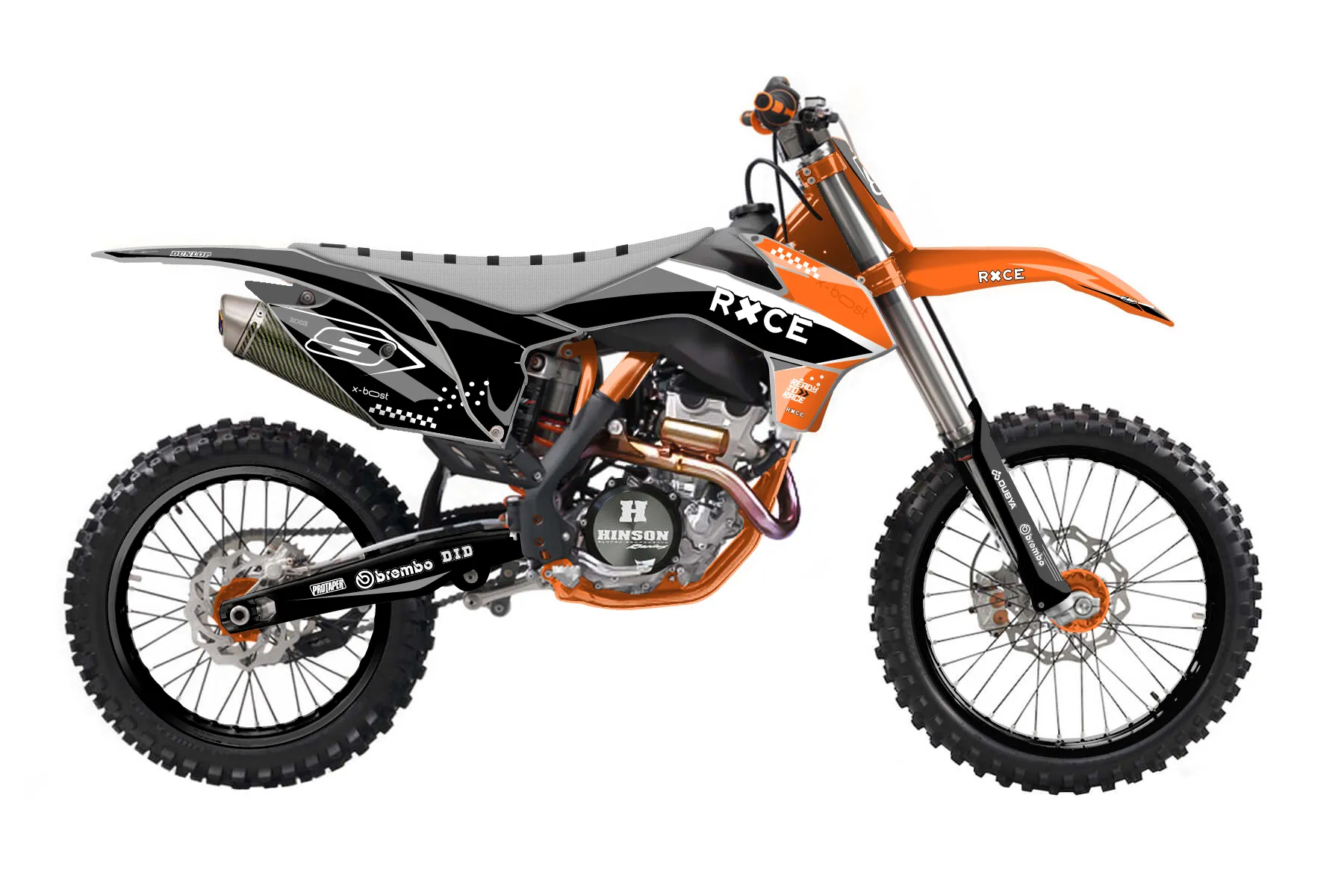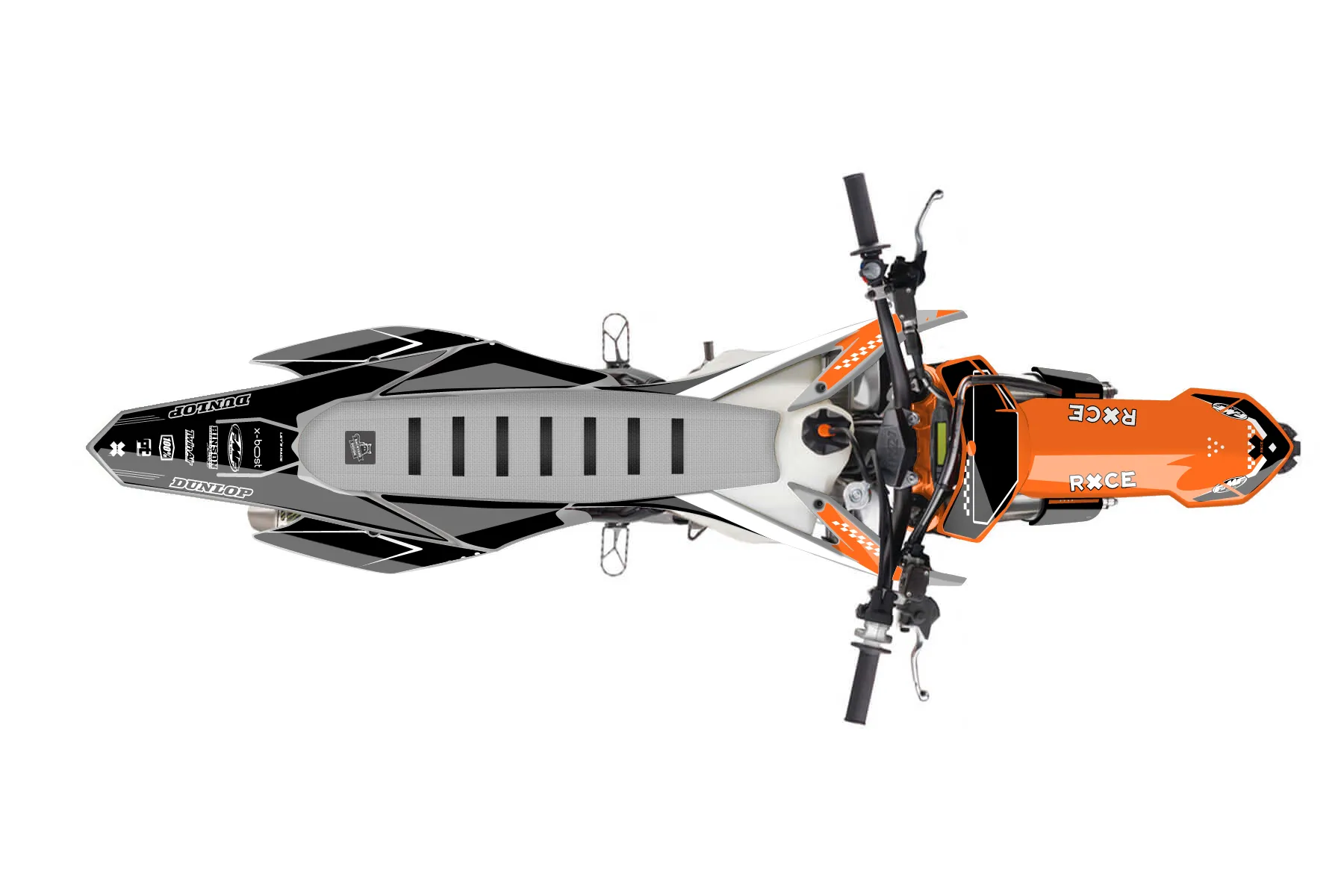 «Craft» — готовый комплект графики серии Staple для KTM MX Graphic Kit KTM SX-F 250 2015. В комплекте: графика на бак и боковые облицовки, крылья (переднее и заднее), передний щиток, номерные таблички, защита вилки. Материал: ПВХ-винил 80 мкр с холодной ламинацией 300 мкр, общая толщина 380 мкр; покрытие глянцевое или матовое на выбор. Устойчив к UV-излучению, воде, бензину и мойке высокого давления. Клей акриловый на сольвентной основе — постоянный, для гибких пластиков. На простых поверхностях монтируется без нагрева; для сложных изгибов рекомендуем фен. Этот пресет можно заказать как есть или взять за основу в конструкторе: поменять цвета, добавить стартовый номер и свой бренд. Производство — 3–5 рабочих дней, доставка по России СДЭКом или Почтой, по СНГ — курьерскими службами.