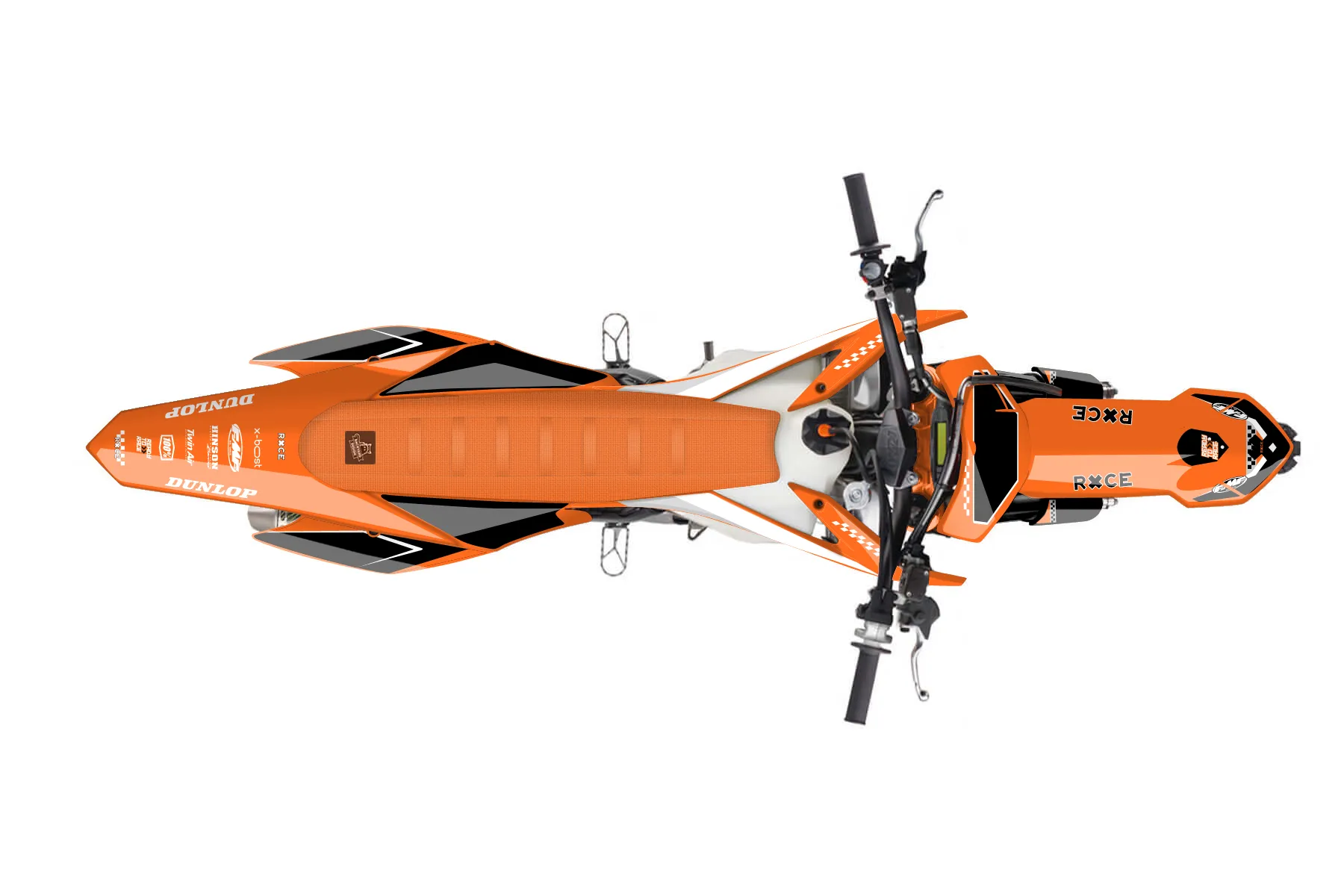 «Data» — готовый комплект графики серии Staple для KTM MX Graphic Kit KTM SX-F 250 2015. В комплекте: графика на бак и боковые облицовки, крылья (переднее и заднее), передний щиток, номерные таблички, защита вилки. Материал: ПВХ-винил 80 мкр с холодной ламинацией 300 мкр, общая толщина 380 мкр; покрытие глянцевое или матовое на выбор. Устойчив к UV-излучению, воде, бензину и мойке высокого давления. Клей акриловый на сольвентной основе — постоянный, для гибких пластиков. На простых поверхностях монтируется без нагрева; для сложных изгибов рекомендуем фен. Этот пресет можно заказать как есть или взять за основу в конструкторе: поменять цвета, добавить стартовый номер и свой бренд. Производство — 3–5 рабочих дней, доставка по России СДЭКом или Почтой, по СНГ — курьерскими службами.