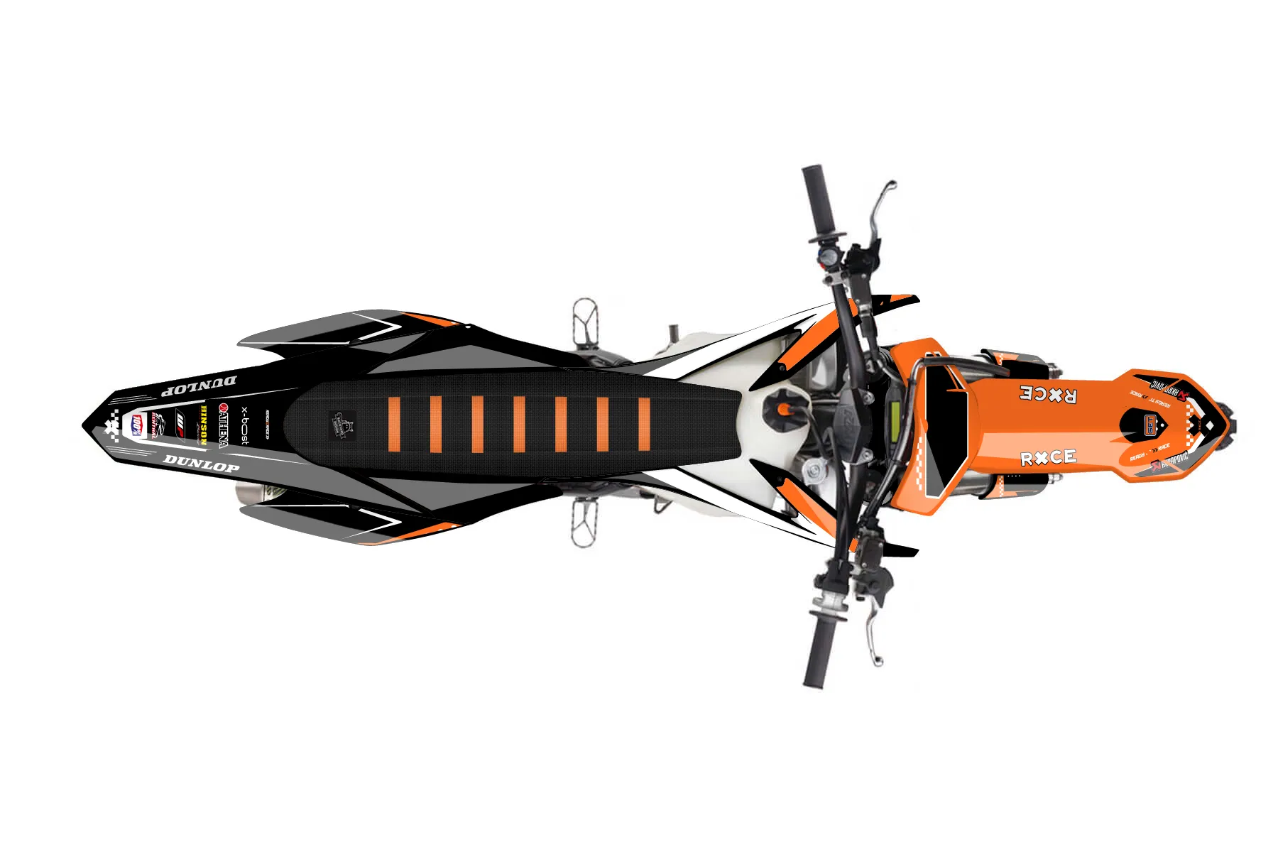 «Leak» — готовый комплект графики серии Staple для KTM MX Graphic Kit KTM SX-F 250 2015. В комплекте: графика на бак и боковые облицовки, крылья (переднее и заднее), передний щиток, номерные таблички, защита вилки. Материал: ПВХ-винил 80 мкр с холодной ламинацией 300 мкр, общая толщина 380 мкр; покрытие глянцевое или матовое на выбор. Устойчив к UV-излучению, воде, бензину и мойке высокого давления. Клей акриловый на сольвентной основе — постоянный, для гибких пластиков. На простых поверхностях монтируется без нагрева; для сложных изгибов рекомендуем фен. Этот пресет можно заказать как есть или взять за основу в конструкторе: поменять цвета, добавить стартовый номер и свой бренд. Производство — 3–5 рабочих дней, доставка по России СДЭКом или Почтой, по СНГ — курьерскими службами.