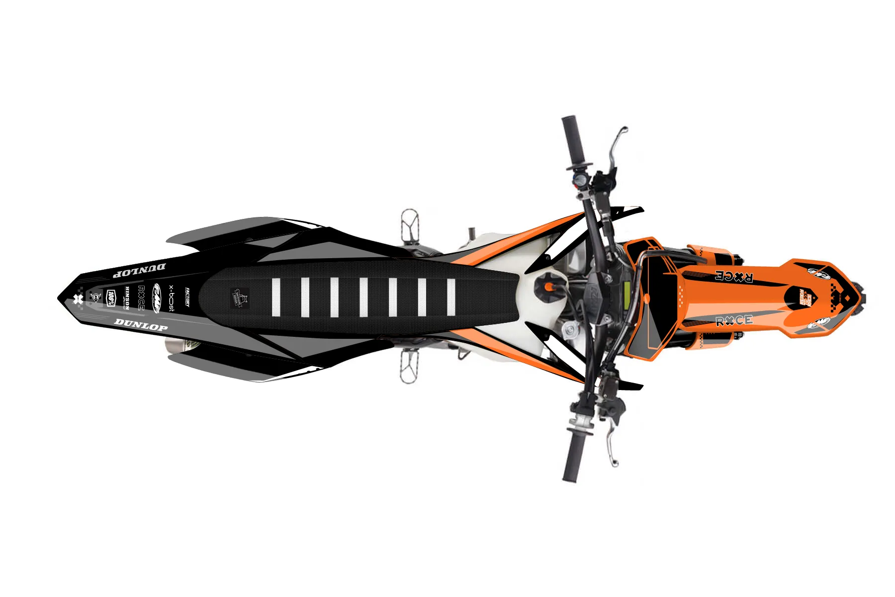 «RacerX» — готовый комплект графики серии Staple для KTM MX Graphic Kit KTM SX-F 250 2015. В комплекте: графика на бак и боковые облицовки, крылья (переднее и заднее), передний щиток, номерные таблички, защита вилки. Материал: ПВХ-винил 80 мкр с холодной ламинацией 300 мкр, общая толщина 380 мкр; покрытие глянцевое или матовое на выбор. Устойчив к UV-излучению, воде, бензину и мойке высокого давления. Клей акриловый на сольвентной основе — постоянный, для гибких пластиков. На простых поверхностях монтируется без нагрева; для сложных изгибов рекомендуем фен. Этот пресет можно заказать как есть или взять за основу в конструкторе: поменять цвета, добавить стартовый номер и свой бренд. Производство — 3–5 рабочих дней, доставка по России СДЭКом или Почтой, по СНГ — курьерскими службами.