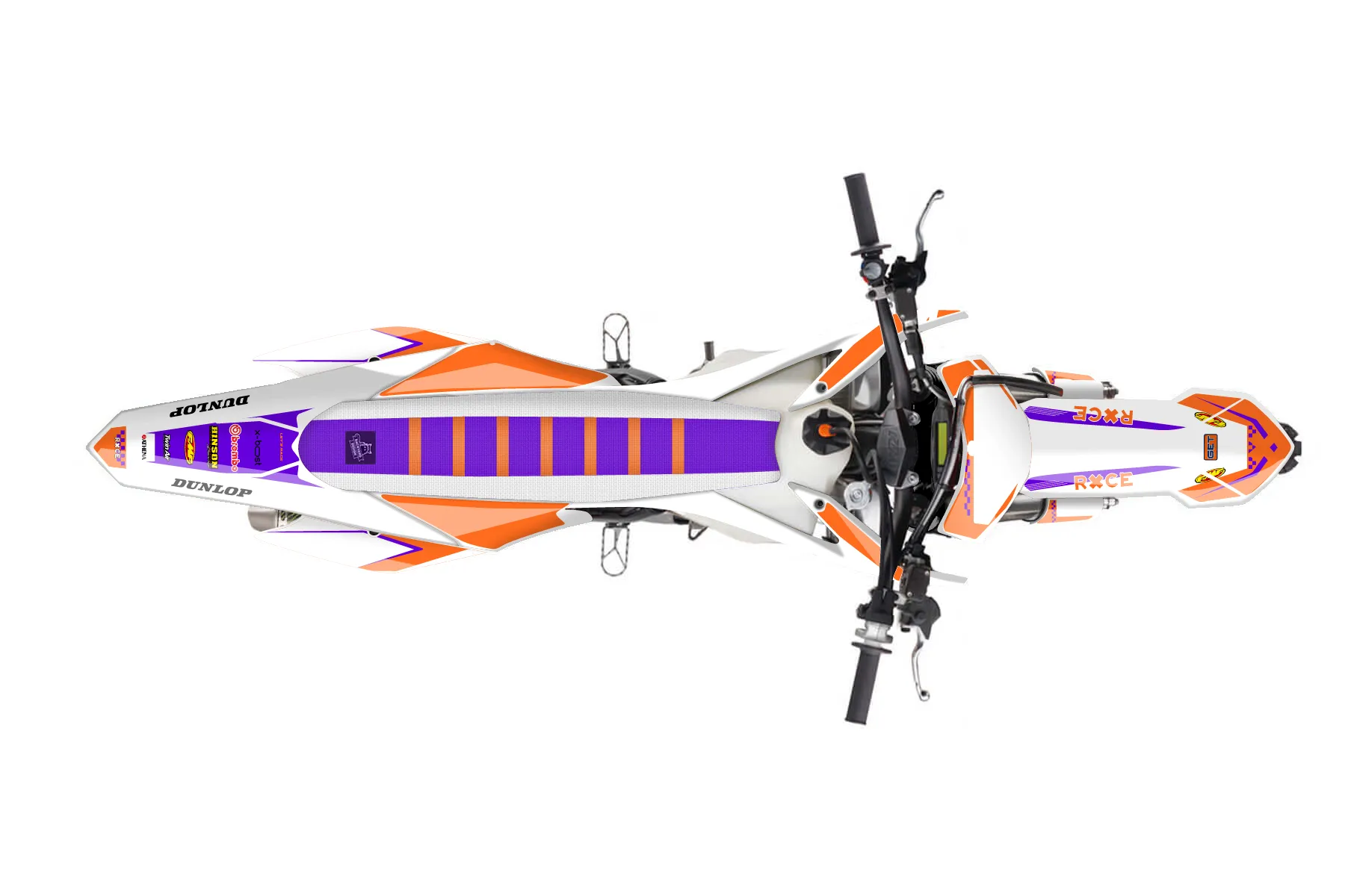 «Retro» — готовый комплект графики серии Staple для KTM MX Graphic Kit KTM SX-F 250 2015. В комплекте: графика на бак и боковые облицовки, крылья (переднее и заднее), передний щиток, номерные таблички, защита вилки. Материал: ПВХ-винил 80 мкр с холодной ламинацией 300 мкр, общая толщина 380 мкр; покрытие глянцевое или матовое на выбор. Устойчив к UV-излучению, воде, бензину и мойке высокого давления. Клей акриловый на сольвентной основе — постоянный, для гибких пластиков. На простых поверхностях монтируется без нагрева; для сложных изгибов рекомендуем фен. Этот пресет можно заказать как есть или взять за основу в конструкторе: поменять цвета, добавить стартовый номер и свой бренд. Производство — 3–5 рабочих дней, доставка по России СДЭКом или Почтой, по СНГ — курьерскими службами.