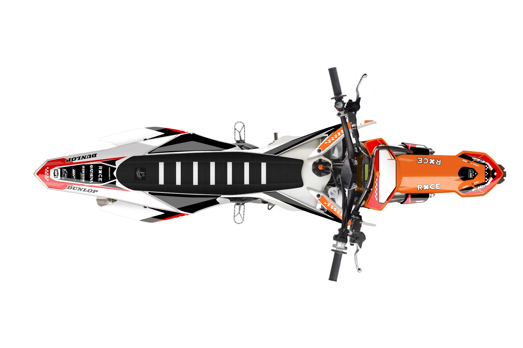 «Spirit» — готовый комплект графики серии Staple для KTM MX Graphic Kit KTM SX-F 250 2015. В комплекте: графика на бак и боковые облицовки, крылья (переднее и заднее), передний щиток, номерные таблички, защита вилки. Материал: ПВХ-винил 80 мкр с холодной ламинацией 300 мкр, общая толщина 380 мкр; покрытие глянцевое или матовое на выбор. Устойчив к UV-излучению, воде, бензину и мойке высокого давления. Клей акриловый на сольвентной основе — постоянный, для гибких пластиков. На простых поверхностях монтируется без нагрева; для сложных изгибов рекомендуем фен. Этот пресет можно заказать как есть или взять за основу в конструкторе: поменять цвета, добавить стартовый номер и свой бренд. Производство — 3–5 рабочих дней, доставка по России СДЭКом или Почтой, по СНГ — курьерскими службами.