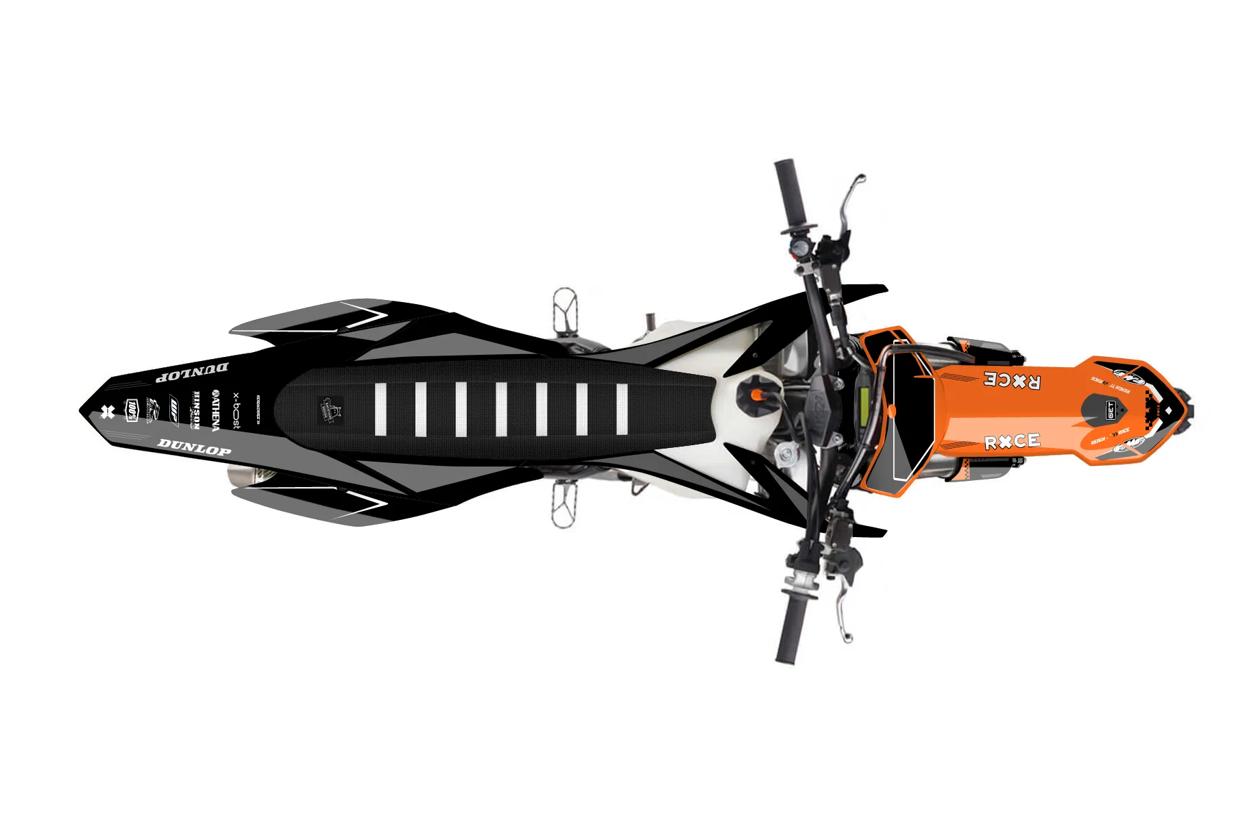 «Thrill» — готовый комплект графики серии Staple для KTM MX Graphic Kit KTM SX-F 250 2015. В комплекте: графика на бак и боковые облицовки, крылья (переднее и заднее), передний щиток, номерные таблички, защита вилки. Материал: ПВХ-винил 80 мкр с холодной ламинацией 300 мкр, общая толщина 380 мкр; покрытие глянцевое или матовое на выбор. Устойчив к UV-излучению, воде, бензину и мойке высокого давления. Клей акриловый на сольвентной основе — постоянный, для гибких пластиков. На простых поверхностях монтируется без нагрева; для сложных изгибов рекомендуем фен. Этот пресет можно заказать как есть или взять за основу в конструкторе: поменять цвета, добавить стартовый номер и свой бренд. Производство — 3–5 рабочих дней, доставка по России СДЭКом или Почтой, по СНГ — курьерскими службами.