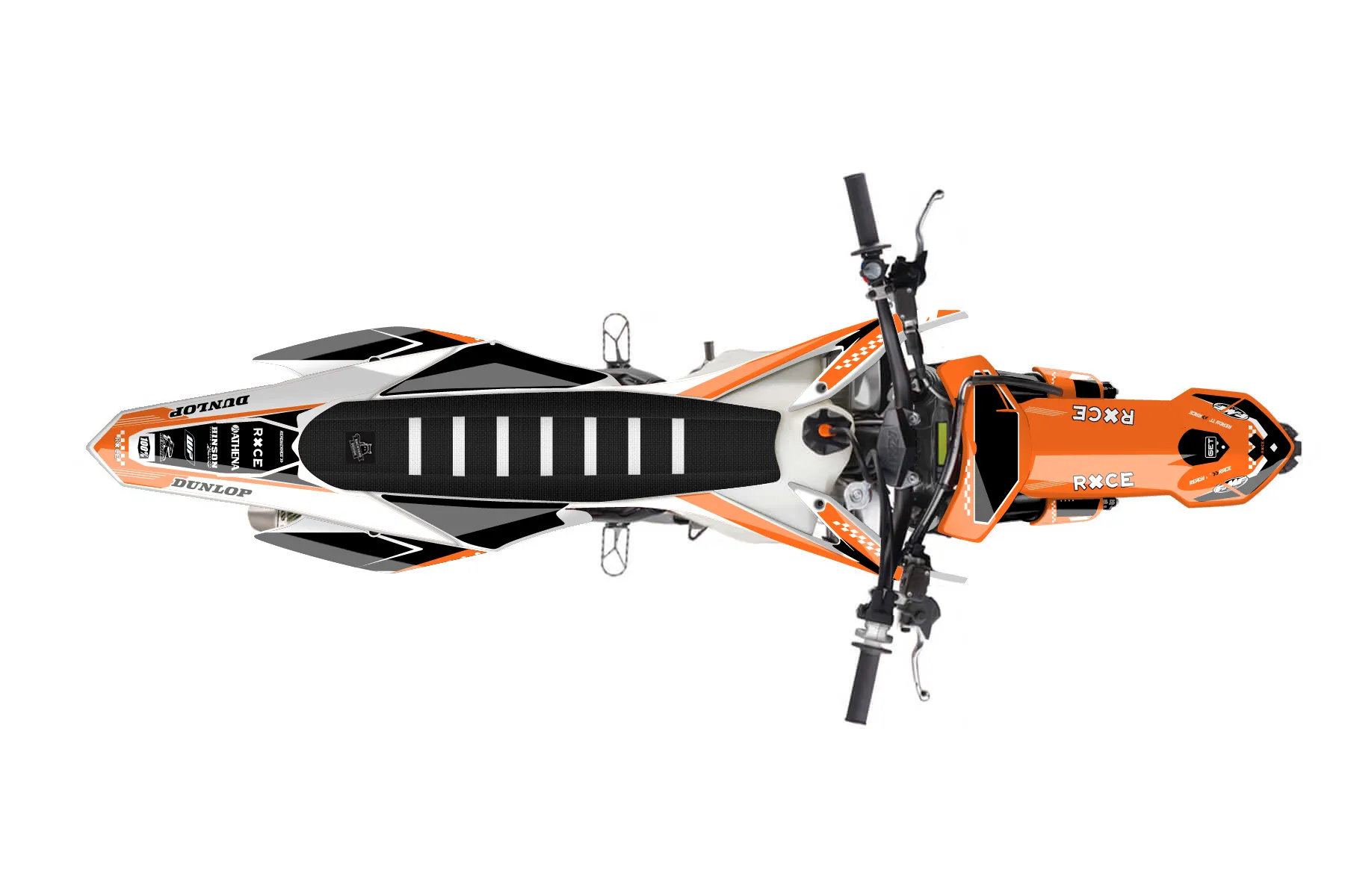 «Warp» — готовый комплект графики серии Staple для KTM MX Graphic Kit KTM SX-F 250 2015. В комплекте: графика на бак и боковые облицовки, крылья (переднее и заднее), передний щиток, номерные таблички, защита вилки. Материал: ПВХ-винил 80 мкр с холодной ламинацией 300 мкр, общая толщина 380 мкр; покрытие глянцевое или матовое на выбор. Устойчив к UV-излучению, воде, бензину и мойке высокого давления. Клей акриловый на сольвентной основе — постоянный, для гибких пластиков. На простых поверхностях монтируется без нагрева; для сложных изгибов рекомендуем фен. Этот пресет можно заказать как есть или взять за основу в конструкторе: поменять цвета, добавить стартовый номер и свой бренд. Производство — 3–5 рабочих дней, доставка по России СДЭКом или Почтой, по СНГ — курьерскими службами.