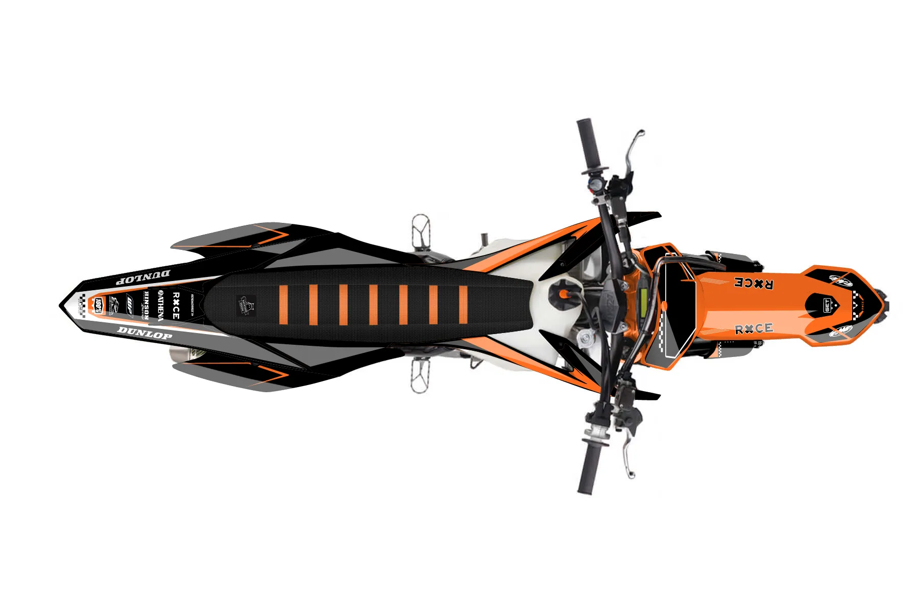 «Zebra» — готовый комплект графики серии Staple для KTM MX Graphic Kit KTM SX-F 250 2015. В комплекте: графика на бак и боковые облицовки, крылья (переднее и заднее), передний щиток, номерные таблички, защита вилки. Материал: ПВХ-винил 80 мкр с холодной ламинацией 300 мкр, общая толщина 380 мкр; покрытие глянцевое или матовое на выбор. Устойчив к UV-излучению, воде, бензину и мойке высокого давления. Клей акриловый на сольвентной основе — постоянный, для гибких пластиков. На простых поверхностях монтируется без нагрева; для сложных изгибов рекомендуем фен. Этот пресет можно заказать как есть или взять за основу в конструкторе: поменять цвета, добавить стартовый номер и свой бренд. Производство — 3–5 рабочих дней, доставка по России СДЭКом или Почтой, по СНГ — курьерскими службами.