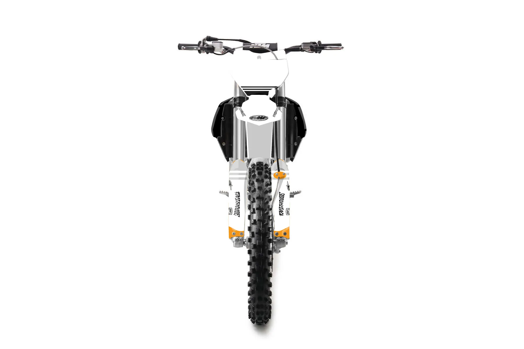 «white fe 350» — готовый комплект графики серии Fasthouse для KTM MX Graphic Kit KTM SX-F 250 2016. В комплекте: графика на бак и боковые облицовки, крылья (переднее и заднее), передний щиток, номерные таблички, защита вилки. Материал: ПВХ-винил 80 мкр с холодной ламинацией 300 мкр, общая толщина 380 мкр; покрытие глянцевое или матовое на выбор. Устойчив к UV-излучению, воде, бензину и мойке высокого давления. Клей акриловый на сольвентной основе — постоянный, для гибких пластиков. На простых поверхностях монтируется без нагрева; для сложных изгибов рекомендуем фен. Этот пресет можно заказать как есть или взять за основу в конструкторе: поменять цвета, добавить стартовый номер и свой бренд. Производство — 3–5 рабочих дней, доставка по России СДЭКом или Почтой, по СНГ — курьерскими службами.
