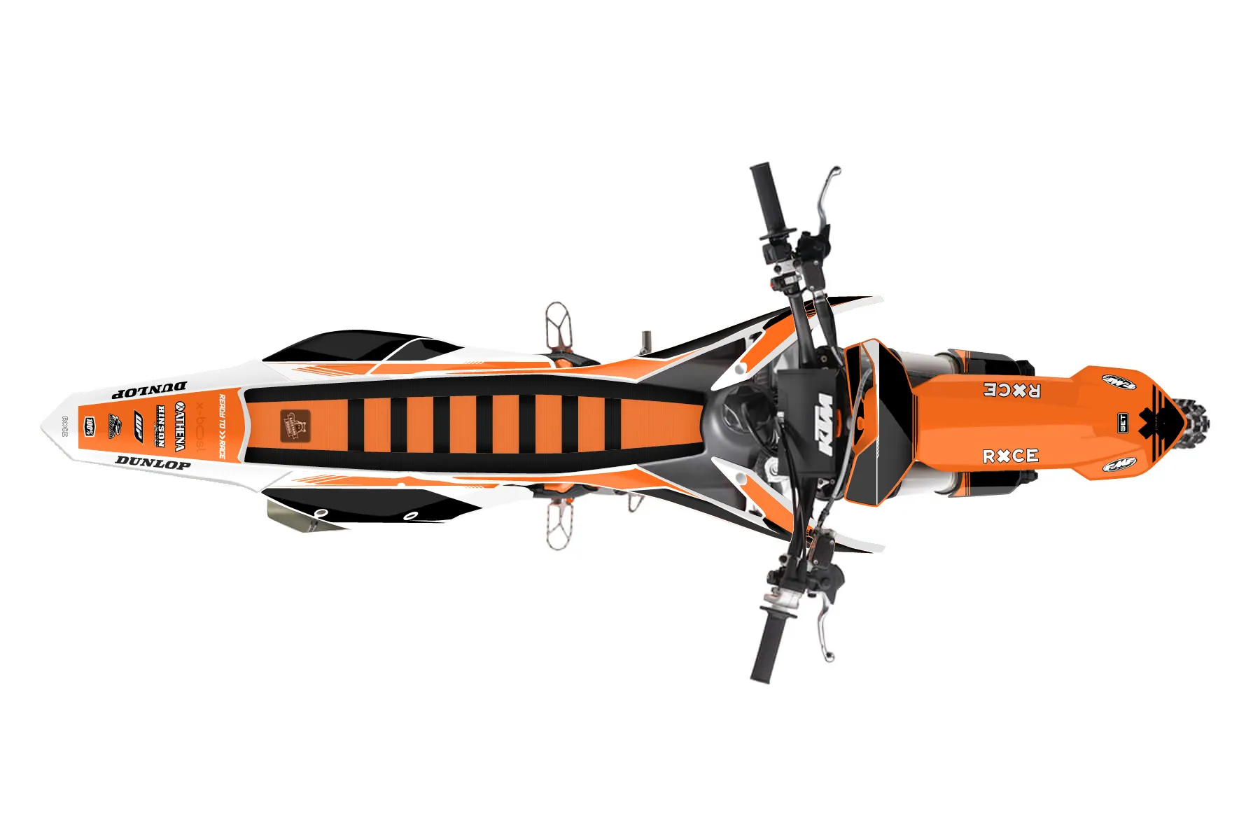 «Crowning» — готовый комплект графики серии Untucked для KTM MX Graphic Kit KTM SX-F 250 2016. В комплекте: графика на бак и боковые облицовки, крылья (переднее и заднее), передний щиток, номерные таблички, защита вилки. Материал: ПВХ-винил 80 мкр с холодной ламинацией 300 мкр, общая толщина 380 мкр; покрытие глянцевое или матовое на выбор. Устойчив к UV-излучению, воде, бензину и мойке высокого давления. Клей акриловый на сольвентной основе — постоянный, для гибких пластиков. На простых поверхностях монтируется без нагрева; для сложных изгибов рекомендуем фен. Этот пресет можно заказать как есть или взять за основу в конструкторе: поменять цвета, добавить стартовый номер и свой бренд. Производство — 3–5 рабочих дней, доставка по России СДЭКом или Почтой, по СНГ — курьерскими службами.