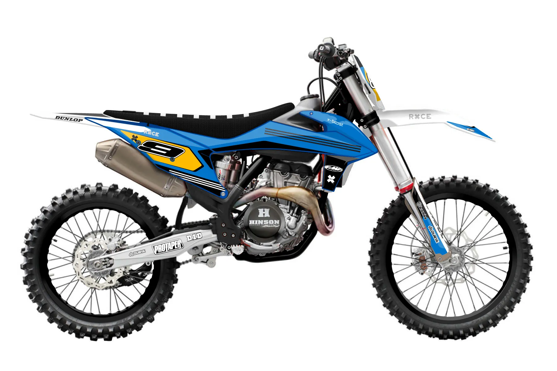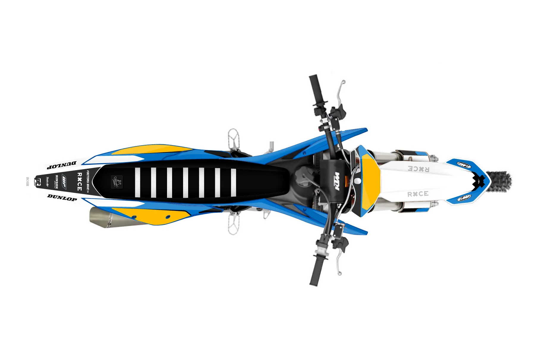 «All-Star» — готовый комплект графики серии Flow для KTM MX Graphic Kit KTM SX-F 250 2019. В комплекте: графика на бак и боковые облицовки, крылья (переднее и заднее), передний щиток, номерные таблички, защита вилки. Материал: ПВХ-винил 80 мкр с холодной ламинацией 300 мкр, общая толщина 380 мкр; покрытие глянцевое или матовое на выбор. Устойчив к UV-излучению, воде, бензину и мойке высокого давления. Клей акриловый на сольвентной основе — постоянный, для гибких пластиков. На простых поверхностях монтируется без нагрева; для сложных изгибов рекомендуем фен. Этот пресет можно заказать как есть или взять за основу в конструкторе: поменять цвета, добавить стартовый номер и свой бренд. Производство — 3–5 рабочих дней, доставка по России СДЭКом или Почтой, по СНГ — курьерскими службами.