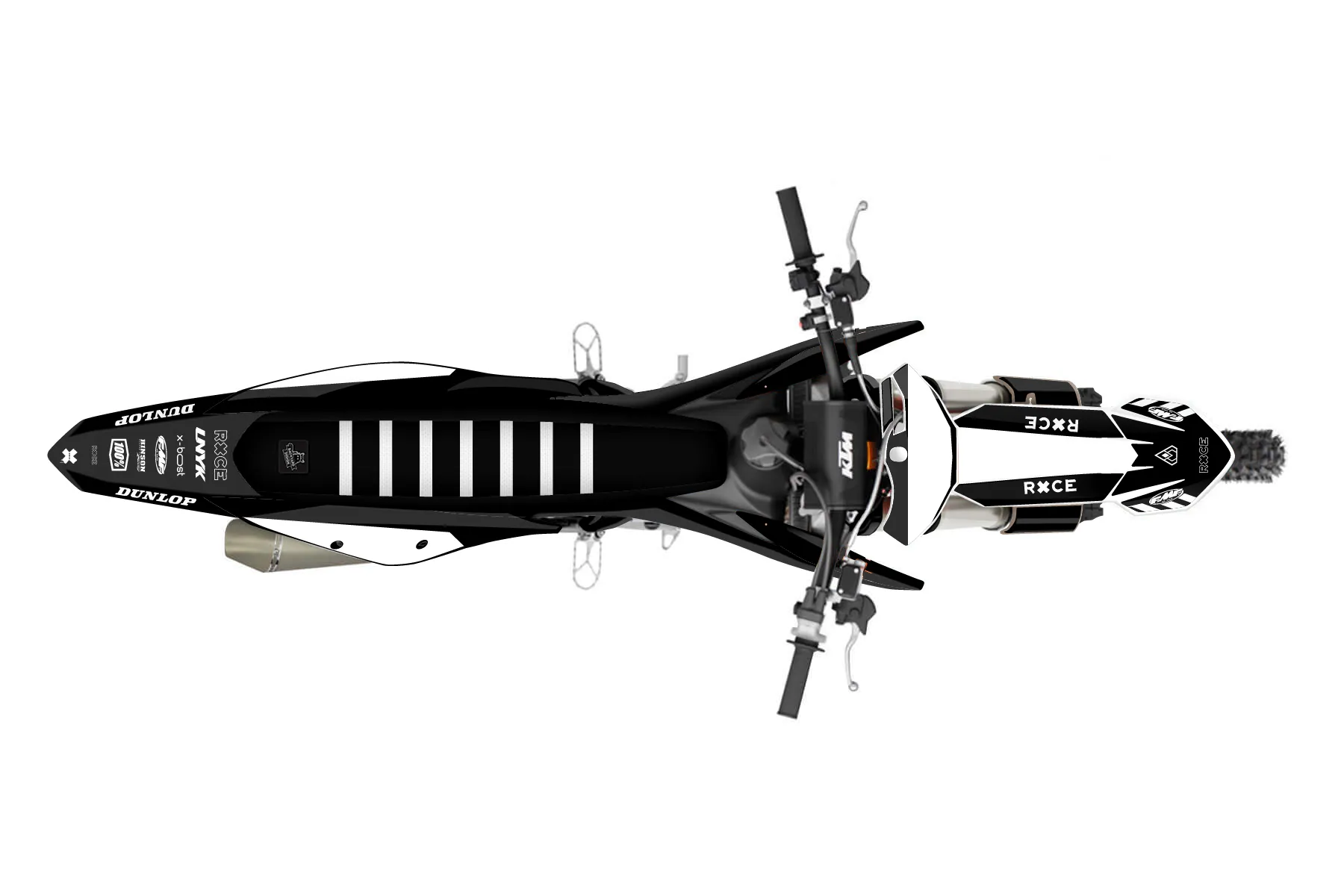 «DeCore» — готовый комплект графики серии Maverick для KTM MX Graphic Kit KTM SX-F 250 2019. В комплекте: графика на бак и боковые облицовки, крылья (переднее и заднее), передний щиток, номерные таблички, защита вилки. Материал: ПВХ-винил 80 мкр с холодной ламинацией 300 мкр, общая толщина 380 мкр; покрытие глянцевое или матовое на выбор. Устойчив к UV-излучению, воде, бензину и мойке высокого давления. Клей акриловый на сольвентной основе — постоянный, для гибких пластиков. На простых поверхностях монтируется без нагрева; для сложных изгибов рекомендуем фен. Этот пресет можно заказать как есть или взять за основу в конструкторе: поменять цвета, добавить стартовый номер и свой бренд. Производство — 3–5 рабочих дней, доставка по России СДЭКом или Почтой, по СНГ — курьерскими службами.