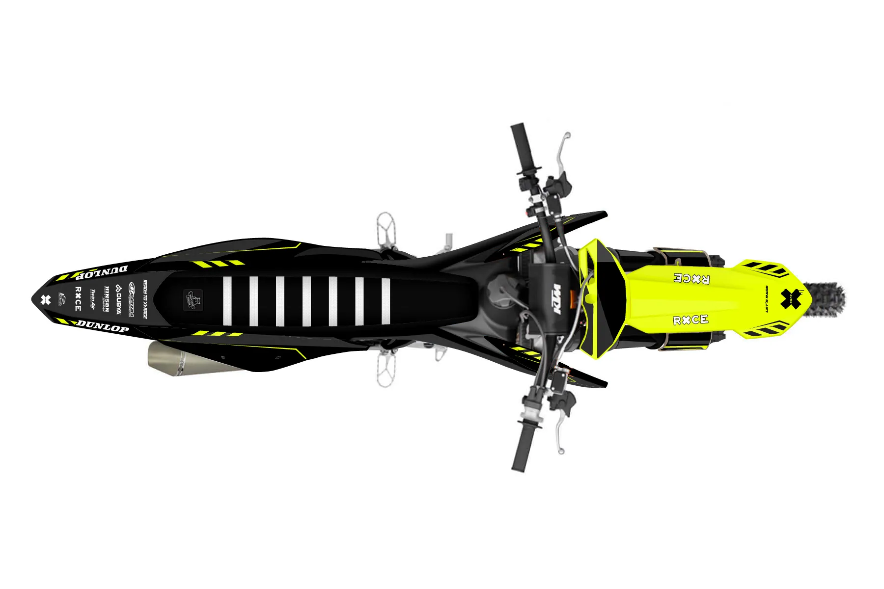 «Kitted Neon» — готовый комплект графики серии Maverick для KTM MX Graphic Kit KTM SX-F 250 2019. В комплекте: графика на бак и боковые облицовки, крылья (переднее и заднее), передний щиток, номерные таблички, защита вилки. Материал: ПВХ-винил 80 мкр с холодной ламинацией 300 мкр, общая толщина 380 мкр; покрытие глянцевое или матовое на выбор. Устойчив к UV-излучению, воде, бензину и мойке высокого давления. Клей акриловый на сольвентной основе — постоянный, для гибких пластиков. На простых поверхностях монтируется без нагрева; для сложных изгибов рекомендуем фен. Этот пресет можно заказать как есть или взять за основу в конструкторе: поменять цвета, добавить стартовый номер и свой бренд. Производство — 3–5 рабочих дней, доставка по России СДЭКом или Почтой, по СНГ — курьерскими службами.