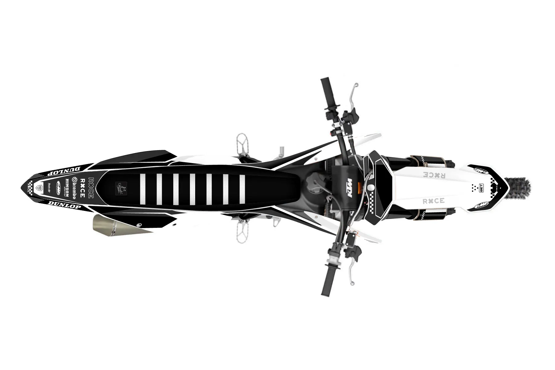 «Filter» — готовый комплект графики серии Staple для KTM MX Graphic Kit KTM SX-F 250 2019. В комплекте: графика на бак и боковые облицовки, крылья (переднее и заднее), передний щиток, номерные таблички, защита вилки. Материал: ПВХ-винил 80 мкр с холодной ламинацией 300 мкр, общая толщина 380 мкр; покрытие глянцевое или матовое на выбор. Устойчив к UV-излучению, воде, бензину и мойке высокого давления. Клей акриловый на сольвентной основе — постоянный, для гибких пластиков. На простых поверхностях монтируется без нагрева; для сложных изгибов рекомендуем фен. Этот пресет можно заказать как есть или взять за основу в конструкторе: поменять цвета, добавить стартовый номер и свой бренд. Производство — 3–5 рабочих дней, доставка по России СДЭКом или Почтой, по СНГ — курьерскими службами.