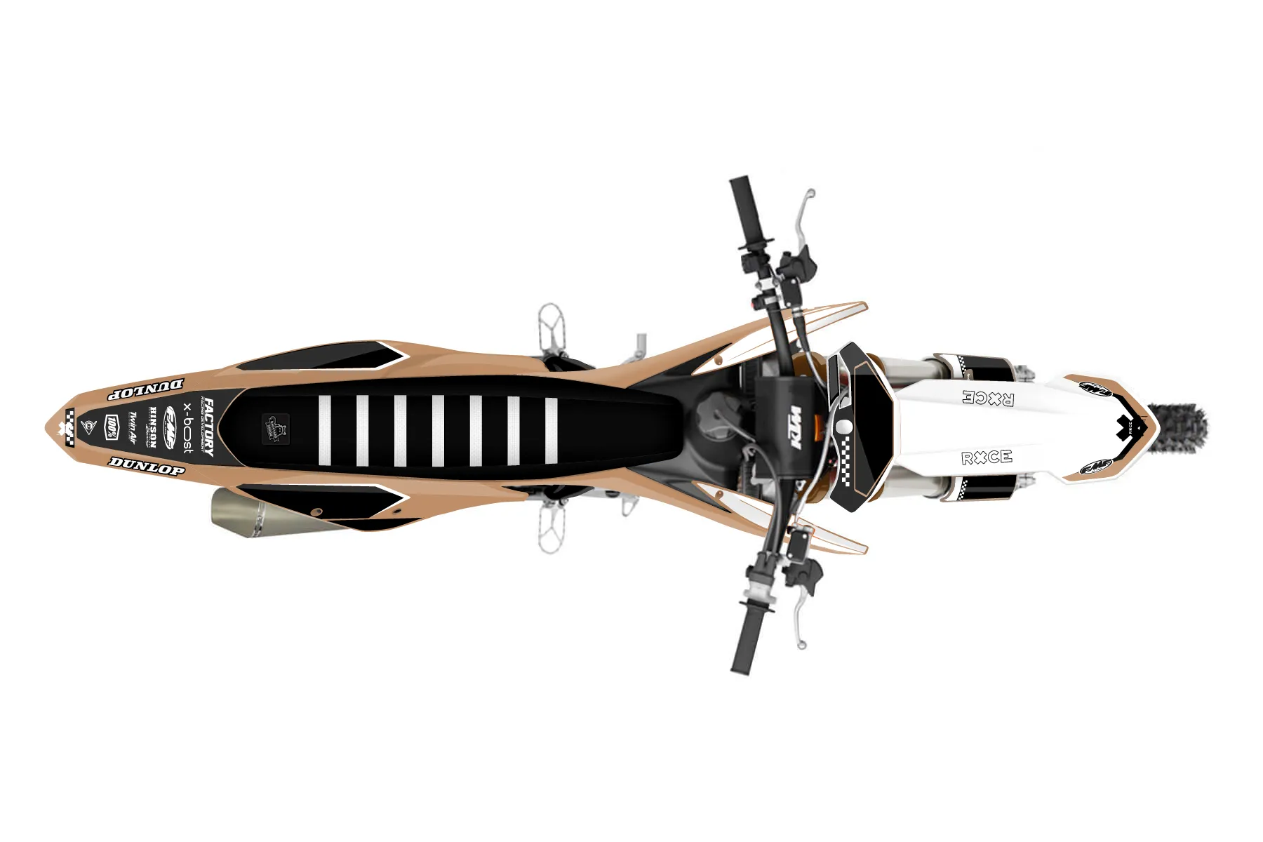 «Polite» — готовый комплект графики серии Staple для KTM MX Graphic Kit KTM SX-F 250 2019. В комплекте: графика на бак и боковые облицовки, крылья (переднее и заднее), передний щиток, номерные таблички, защита вилки. Материал: ПВХ-винил 80 мкр с холодной ламинацией 300 мкр, общая толщина 380 мкр; покрытие глянцевое или матовое на выбор. Устойчив к UV-излучению, воде, бензину и мойке высокого давления. Клей акриловый на сольвентной основе — постоянный, для гибких пластиков. На простых поверхностях монтируется без нагрева; для сложных изгибов рекомендуем фен. Этот пресет можно заказать как есть или взять за основу в конструкторе: поменять цвета, добавить стартовый номер и свой бренд. Производство — 3–5 рабочих дней, доставка по России СДЭКом или Почтой, по СНГ — курьерскими службами.
