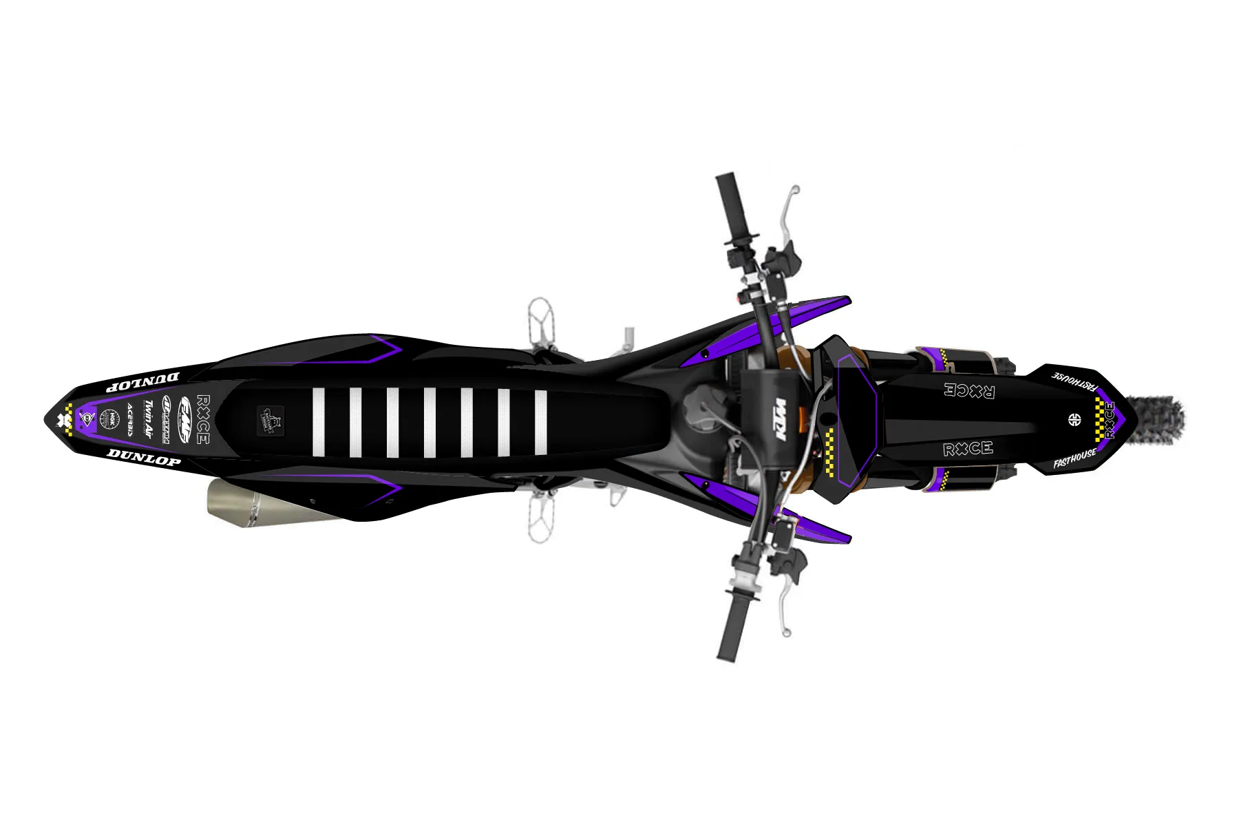 «Virtual» — готовый комплект графики серии Staple для KTM MX Graphic Kit KTM SX-F 250 2019. В комплекте: графика на бак и боковые облицовки, крылья (переднее и заднее), передний щиток, номерные таблички, защита вилки. Материал: ПВХ-винил 80 мкр с холодной ламинацией 300 мкр, общая толщина 380 мкр; покрытие глянцевое или матовое на выбор. Устойчив к UV-излучению, воде, бензину и мойке высокого давления. Клей акриловый на сольвентной основе — постоянный, для гибких пластиков. На простых поверхностях монтируется без нагрева; для сложных изгибов рекомендуем фен. Этот пресет можно заказать как есть или взять за основу в конструкторе: поменять цвета, добавить стартовый номер и свой бренд. Производство — 3–5 рабочих дней, доставка по России СДЭКом или Почтой, по СНГ — курьерскими службами.