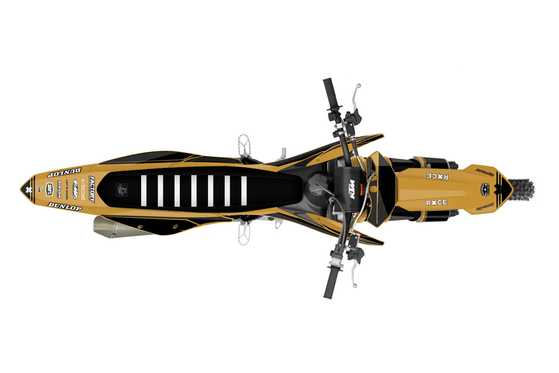 «Calm» — готовый комплект графики серии Untucked для KTM MX Graphic Kit KTM SX-F 250 2019. В комплекте: графика на бак и боковые облицовки, крылья (переднее и заднее), передний щиток, номерные таблички, защита вилки. Материал: ПВХ-винил 80 мкр с холодной ламинацией 300 мкр, общая толщина 380 мкр; покрытие глянцевое или матовое на выбор. Устойчив к UV-излучению, воде, бензину и мойке высокого давления. Клей акриловый на сольвентной основе — постоянный, для гибких пластиков. На простых поверхностях монтируется без нагрева; для сложных изгибов рекомендуем фен. Этот пресет можно заказать как есть или взять за основу в конструкторе: поменять цвета, добавить стартовый номер и свой бренд. Производство — 3–5 рабочих дней, доставка по России СДЭКом или Почтой, по СНГ — курьерскими службами.