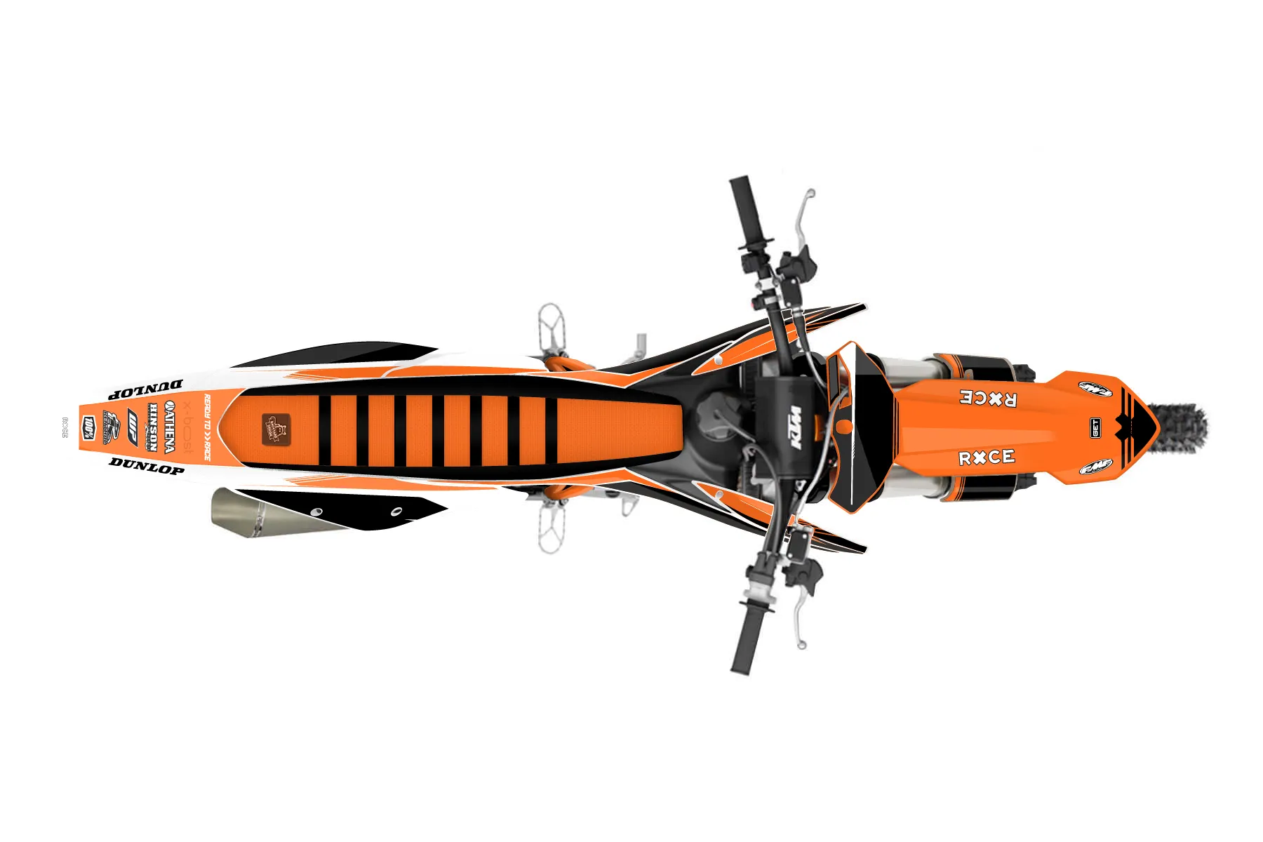 «Crowning» — готовый комплект графики серии Untucked для KTM MX Graphic Kit KTM SX-F 250 2019. В комплекте: графика на бак и боковые облицовки, крылья (переднее и заднее), передний щиток, номерные таблички, защита вилки. Материал: ПВХ-винил 80 мкр с холодной ламинацией 300 мкр, общая толщина 380 мкр; покрытие глянцевое или матовое на выбор. Устойчив к UV-излучению, воде, бензину и мойке высокого давления. Клей акриловый на сольвентной основе — постоянный, для гибких пластиков. На простых поверхностях монтируется без нагрева; для сложных изгибов рекомендуем фен. Этот пресет можно заказать как есть или взять за основу в конструкторе: поменять цвета, добавить стартовый номер и свой бренд. Производство — 3–5 рабочих дней, доставка по России СДЭКом или Почтой, по СНГ — курьерскими службами.