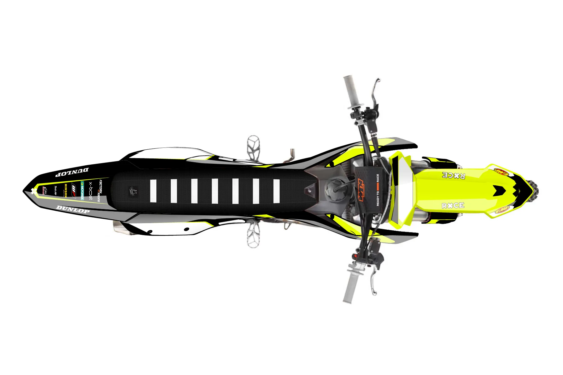 «Lucent Neon» — готовый комплект графики серии Flow для KTM MX Graphic Kit KTM SX-F 250 2023. В комплекте: графика на бак и боковые облицовки, крылья (переднее и заднее), передний щиток, номерные таблички, защита вилки. Материал: ПВХ-винил 80 мкр с холодной ламинацией 300 мкр, общая толщина 380 мкр; покрытие глянцевое или матовое на выбор. Устойчив к UV-излучению, воде, бензину и мойке высокого давления. Клей акриловый на сольвентной основе — постоянный, для гибких пластиков. На простых поверхностях монтируется без нагрева; для сложных изгибов рекомендуем фен. Этот пресет можно заказать как есть или взять за основу в конструкторе: поменять цвета, добавить стартовый номер и свой бренд. Производство — 3–5 рабочих дней, доставка по России СДЭКом или Почтой, по СНГ — курьерскими службами.