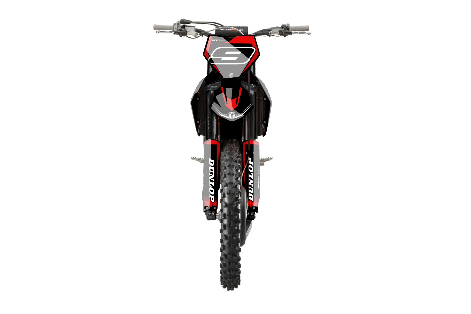 «250sxf» — готовый комплект графики серии Fusion для KTM MX Graphic Kit KTM SX-F 250 2023. В комплекте: графика на бак и боковые облицовки, крылья (переднее и заднее), передний щиток, номерные таблички, защита вилки. Материал: ПВХ-винил 80 мкр с холодной ламинацией 300 мкр, общая толщина 380 мкр; покрытие глянцевое или матовое на выбор. Устойчив к UV-излучению, воде, бензину и мойке высокого давления. Клей акриловый на сольвентной основе — постоянный, для гибких пластиков. На простых поверхностях монтируется без нагрева; для сложных изгибов рекомендуем фен. Этот пресет можно заказать как есть или взять за основу в конструкторе: поменять цвета, добавить стартовый номер и свой бренд. Производство — 3–5 рабочих дней, доставка по России СДЭКом или Почтой, по СНГ — курьерскими службами.