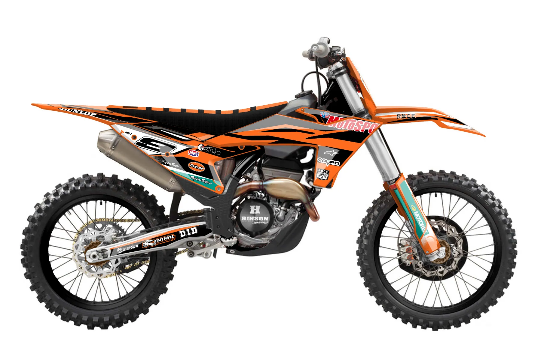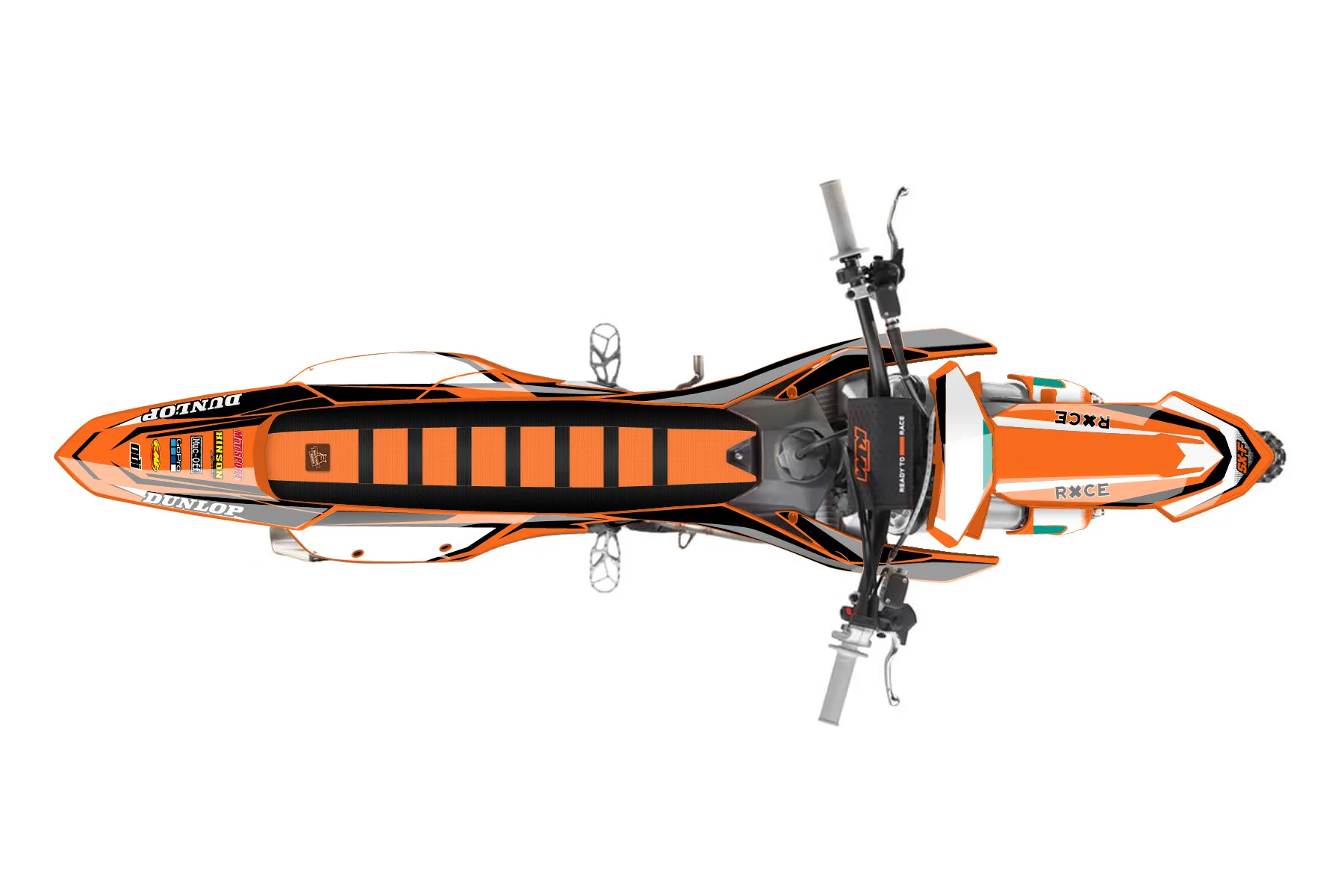 «CustomDesign 917» — готовый комплект графики серии Fusion для KTM MX Graphic Kit KTM SX-F 250 2023. В комплекте: графика на бак и боковые облицовки, крылья (переднее и заднее), передний щиток, номерные таблички, защита вилки. Материал: ПВХ-винил 80 мкр с холодной ламинацией 300 мкр, общая толщина 380 мкр; покрытие глянцевое или матовое на выбор. Устойчив к UV-излучению, воде, бензину и мойке высокого давления. Клей акриловый на сольвентной основе — постоянный, для гибких пластиков. На простых поверхностях монтируется без нагрева; для сложных изгибов рекомендуем фен. Этот пресет можно заказать как есть или взять за основу в конструкторе: поменять цвета, добавить стартовый номер и свой бренд. Производство — 3–5 рабочих дней, доставка по России СДЭКом или Почтой, по СНГ — курьерскими службами.