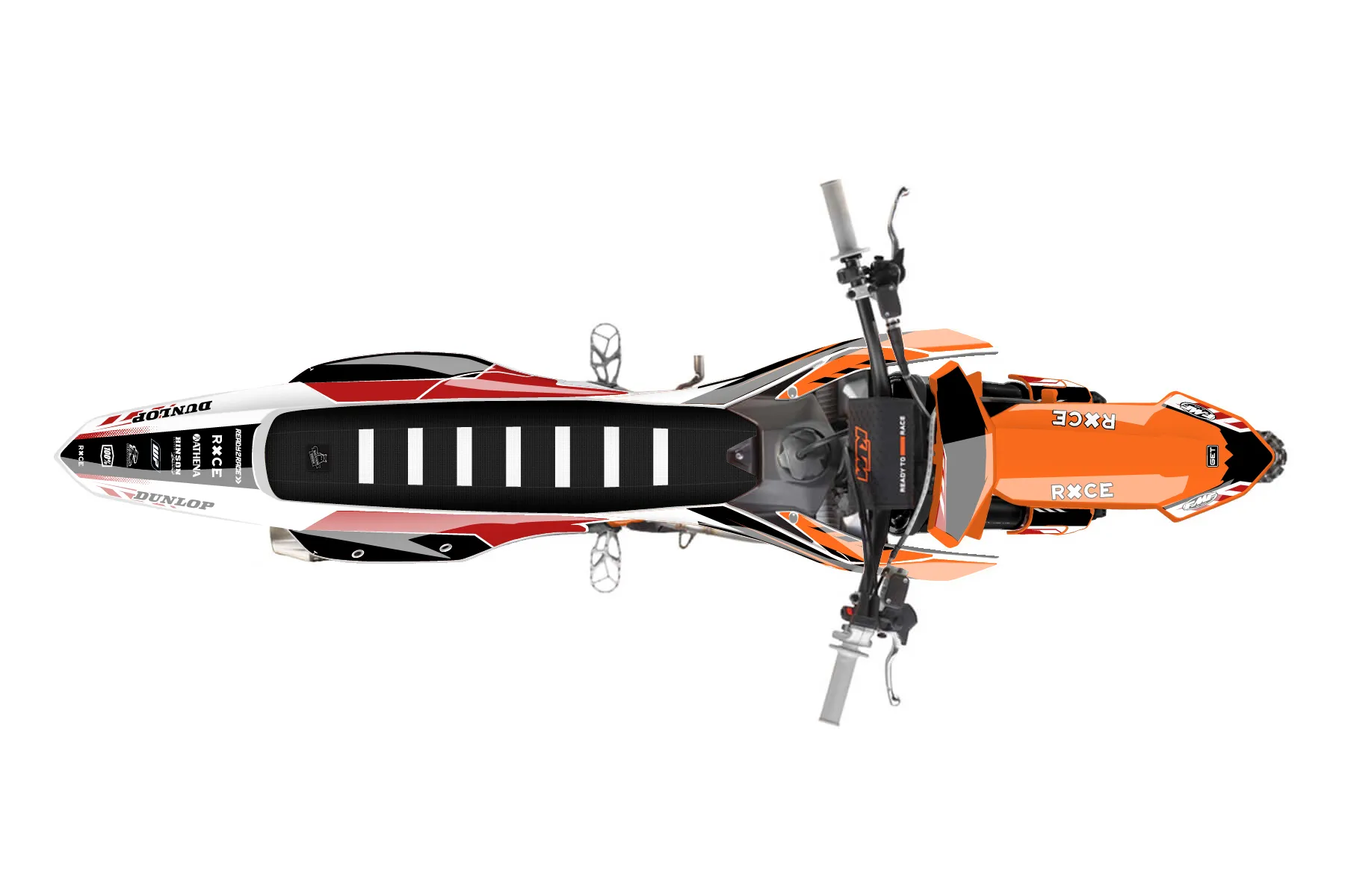 «Dude» — готовый комплект графики серии Maverick для KTM MX Graphic Kit KTM SX-F 250 2023. В комплекте: графика на бак и боковые облицовки, крылья (переднее и заднее), передний щиток, номерные таблички, защита вилки. Материал: ПВХ-винил 80 мкр с холодной ламинацией 300 мкр, общая толщина 380 мкр; покрытие глянцевое или матовое на выбор. Устойчив к UV-излучению, воде, бензину и мойке высокого давления. Клей акриловый на сольвентной основе — постоянный, для гибких пластиков. На простых поверхностях монтируется без нагрева; для сложных изгибов рекомендуем фен. Этот пресет можно заказать как есть или взять за основу в конструкторе: поменять цвета, добавить стартовый номер и свой бренд. Производство — 3–5 рабочих дней, доставка по России СДЭКом или Почтой, по СНГ — курьерскими службами.