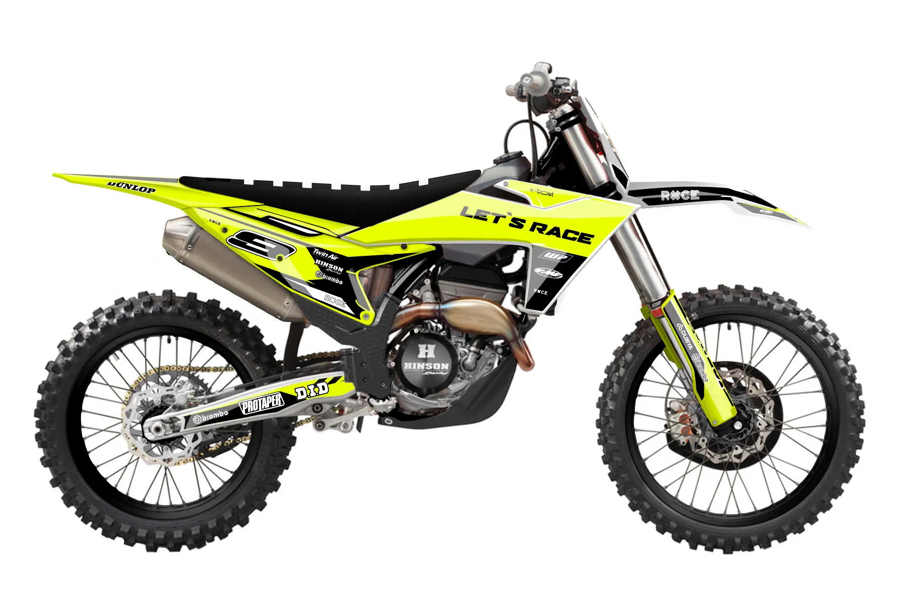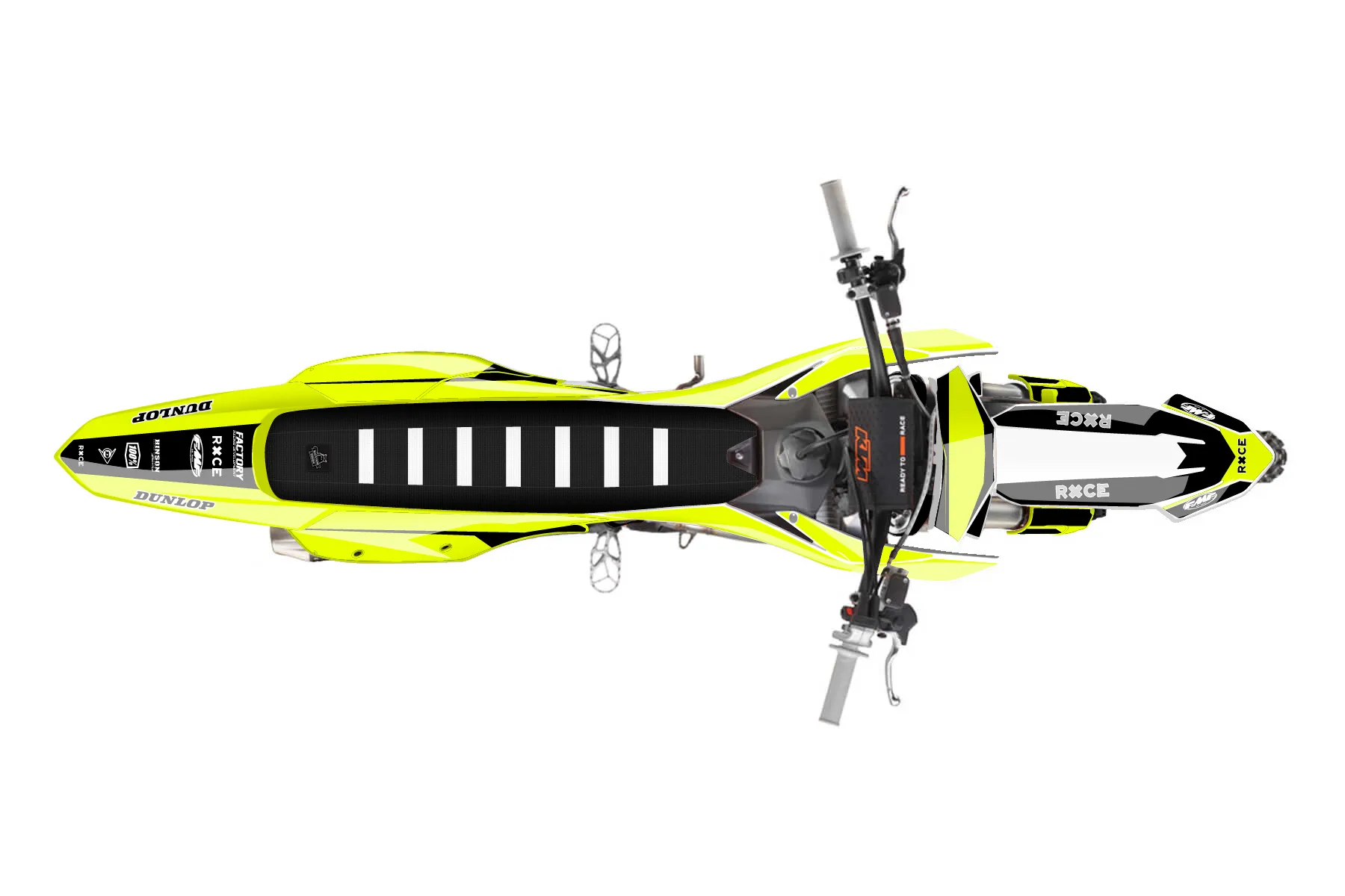 «Ryder Neon» — готовый комплект графики серии Maverick для KTM MX Graphic Kit KTM SX-F 250 2023. В комплекте: графика на бак и боковые облицовки, крылья (переднее и заднее), передний щиток, номерные таблички, защита вилки. Материал: ПВХ-винил 80 мкр с холодной ламинацией 300 мкр, общая толщина 380 мкр; покрытие глянцевое или матовое на выбор. Устойчив к UV-излучению, воде, бензину и мойке высокого давления. Клей акриловый на сольвентной основе — постоянный, для гибких пластиков. На простых поверхностях монтируется без нагрева; для сложных изгибов рекомендуем фен. Этот пресет можно заказать как есть или взять за основу в конструкторе: поменять цвета, добавить стартовый номер и свой бренд. Производство — 3–5 рабочих дней, доставка по России СДЭКом или Почтой, по СНГ — курьерскими службами.