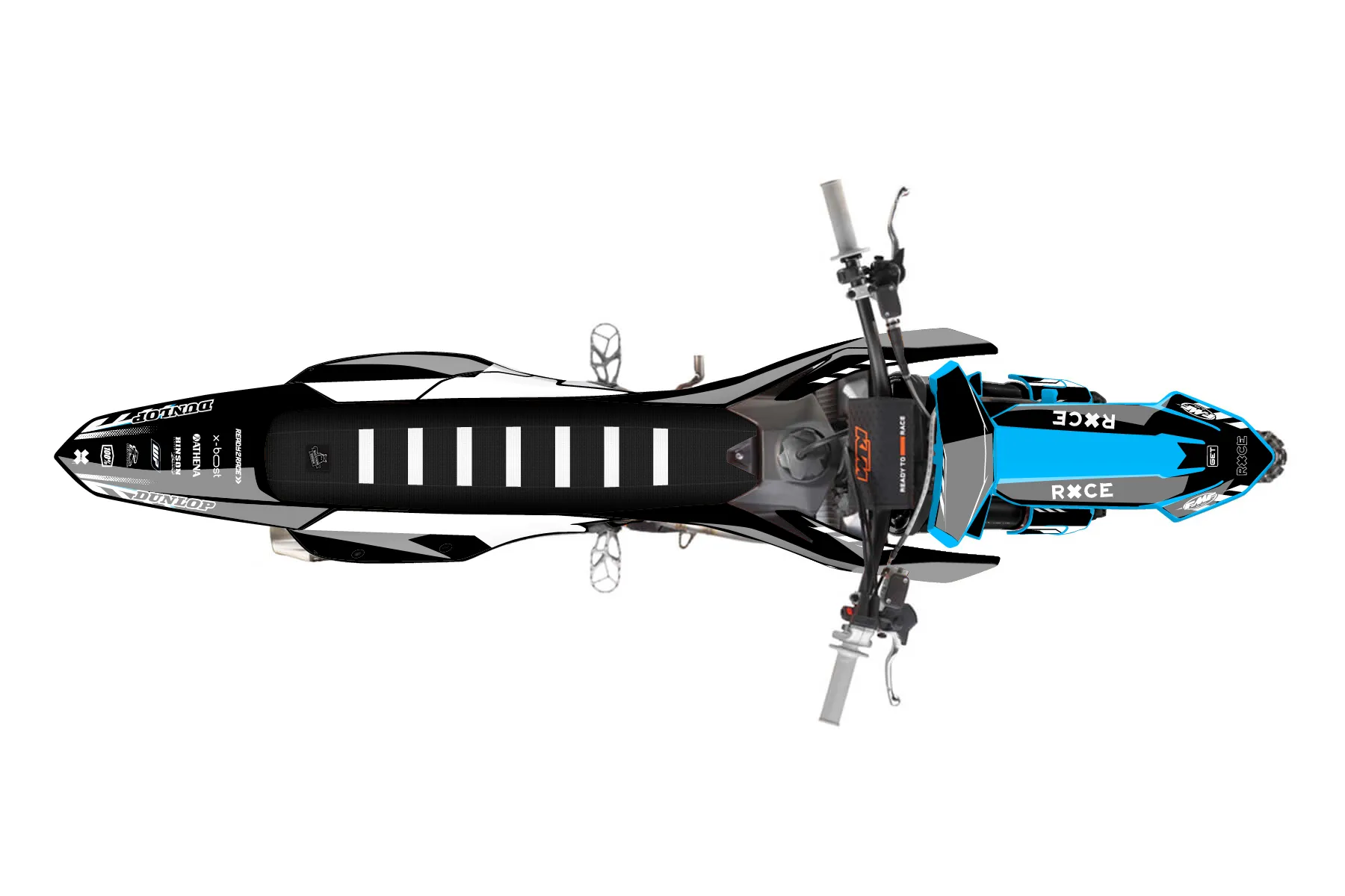 «Swirl» — готовый комплект графики серии Maverick для KTM MX Graphic Kit KTM SX-F 250 2023. В комплекте: графика на бак и боковые облицовки, крылья (переднее и заднее), передний щиток, номерные таблички, защита вилки. Материал: ПВХ-винил 80 мкр с холодной ламинацией 300 мкр, общая толщина 380 мкр; покрытие глянцевое или матовое на выбор. Устойчив к UV-излучению, воде, бензину и мойке высокого давления. Клей акриловый на сольвентной основе — постоянный, для гибких пластиков. На простых поверхностях монтируется без нагрева; для сложных изгибов рекомендуем фен. Этот пресет можно заказать как есть или взять за основу в конструкторе: поменять цвета, добавить стартовый номер и свой бренд. Производство — 3–5 рабочих дней, доставка по России СДЭКом или Почтой, по СНГ — курьерскими службами.