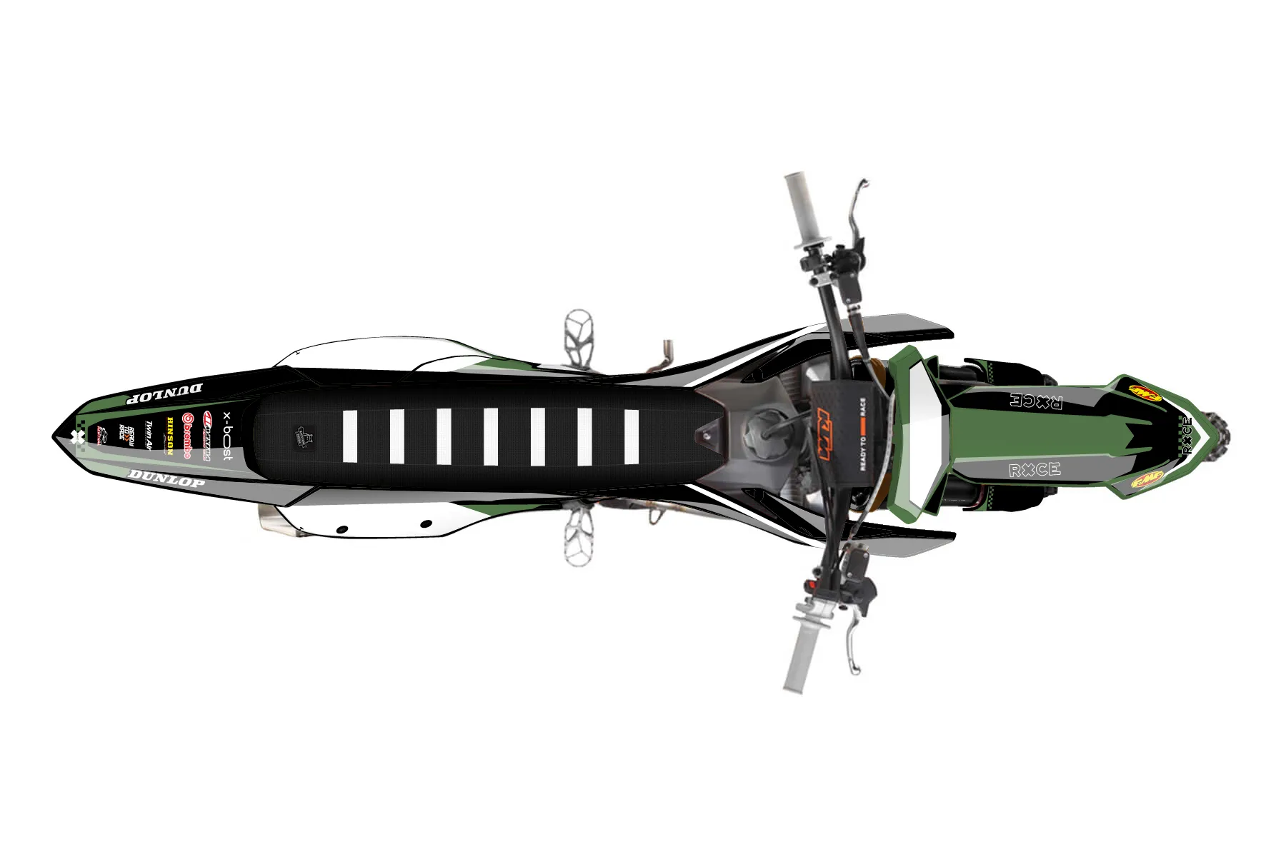 «Dub» — готовый комплект графики серии Staple для KTM MX Graphic Kit KTM SX-F 250 2023. В комплекте: графика на бак и боковые облицовки, крылья (переднее и заднее), передний щиток, номерные таблички, защита вилки. Материал: ПВХ-винил 80 мкр с холодной ламинацией 300 мкр, общая толщина 380 мкр; покрытие глянцевое или матовое на выбор. Устойчив к UV-излучению, воде, бензину и мойке высокого давления. Клей акриловый на сольвентной основе — постоянный, для гибких пластиков. На простых поверхностях монтируется без нагрева; для сложных изгибов рекомендуем фен. Этот пресет можно заказать как есть или взять за основу в конструкторе: поменять цвета, добавить стартовый номер и свой бренд. Производство — 3–5 рабочих дней, доставка по России СДЭКом или Почтой, по СНГ — курьерскими службами.