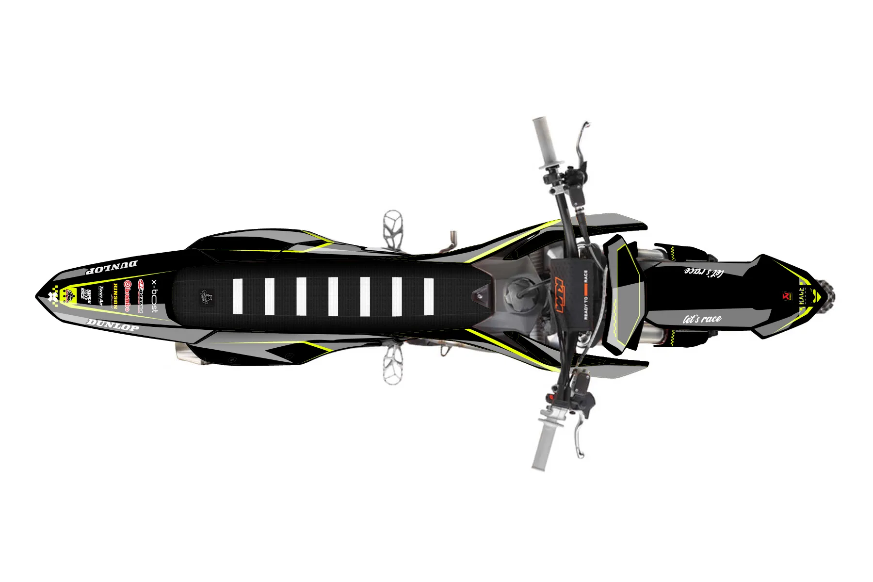 «Refuse Neon» — готовый комплект графики серии Staple для KTM MX Graphic Kit KTM SX-F 250 2023. В комплекте: графика на бак и боковые облицовки, крылья (переднее и заднее), передний щиток, номерные таблички, защита вилки. Материал: ПВХ-винил 80 мкр с холодной ламинацией 300 мкр, общая толщина 380 мкр; покрытие глянцевое или матовое на выбор. Устойчив к UV-излучению, воде, бензину и мойке высокого давления. Клей акриловый на сольвентной основе — постоянный, для гибких пластиков. На простых поверхностях монтируется без нагрева; для сложных изгибов рекомендуем фен. Этот пресет можно заказать как есть или взять за основу в конструкторе: поменять цвета, добавить стартовый номер и свой бренд. Производство — 3–5 рабочих дней, доставка по России СДЭКом или Почтой, по СНГ — курьерскими службами.