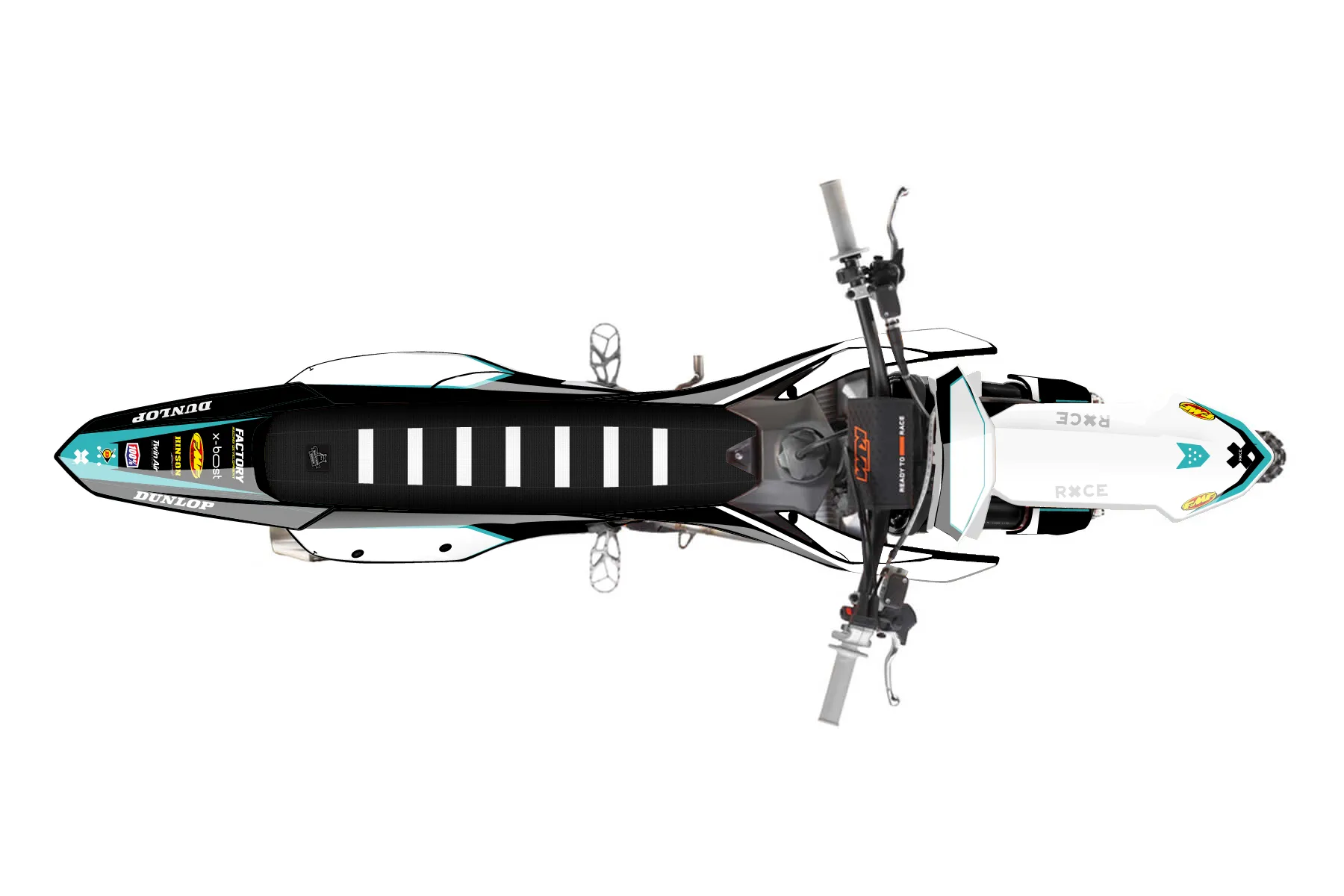 «Stunner» — готовый комплект графики серии Staple для KTM MX Graphic Kit KTM SX-F 250 2023. В комплекте: графика на бак и боковые облицовки, крылья (переднее и заднее), передний щиток, номерные таблички, защита вилки. Материал: ПВХ-винил 80 мкр с холодной ламинацией 300 мкр, общая толщина 380 мкр; покрытие глянцевое или матовое на выбор. Устойчив к UV-излучению, воде, бензину и мойке высокого давления. Клей акриловый на сольвентной основе — постоянный, для гибких пластиков. На простых поверхностях монтируется без нагрева; для сложных изгибов рекомендуем фен. Этот пресет можно заказать как есть или взять за основу в конструкторе: поменять цвета, добавить стартовый номер и свой бренд. Производство — 3–5 рабочих дней, доставка по России СДЭКом или Почтой, по СНГ — курьерскими службами.