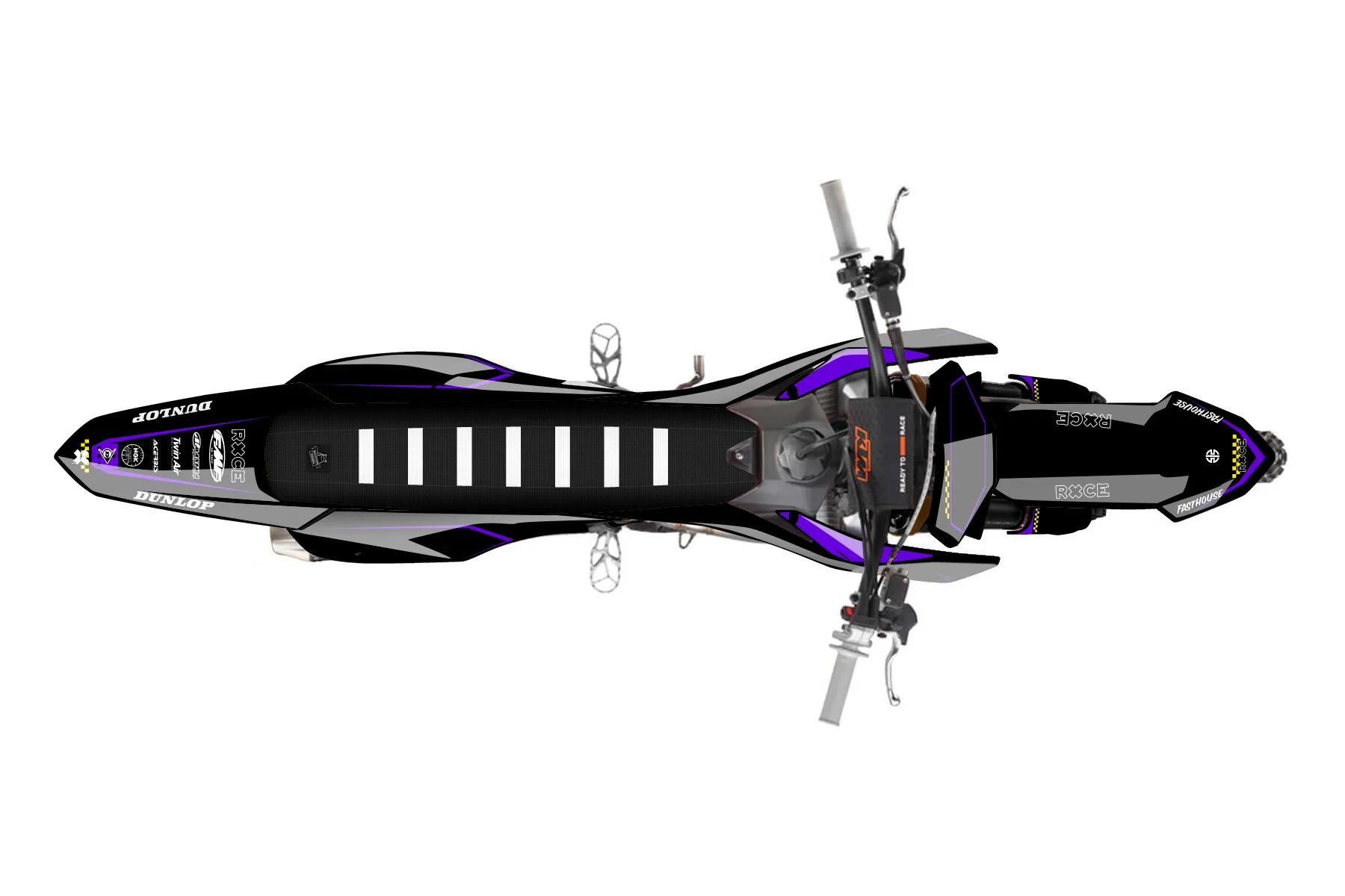 «Virtual» — готовый комплект графики серии Staple для KTM MX Graphic Kit KTM SX-F 250 2023. В комплекте: графика на бак и боковые облицовки, крылья (переднее и заднее), передний щиток, номерные таблички, защита вилки. Материал: ПВХ-винил 80 мкр с холодной ламинацией 300 мкр, общая толщина 380 мкр; покрытие глянцевое или матовое на выбор. Устойчив к UV-излучению, воде, бензину и мойке высокого давления. Клей акриловый на сольвентной основе — постоянный, для гибких пластиков. На простых поверхностях монтируется без нагрева; для сложных изгибов рекомендуем фен. Этот пресет можно заказать как есть или взять за основу в конструкторе: поменять цвета, добавить стартовый номер и свой бренд. Производство — 3–5 рабочих дней, доставка по России СДЭКом или Почтой, по СНГ — курьерскими службами.