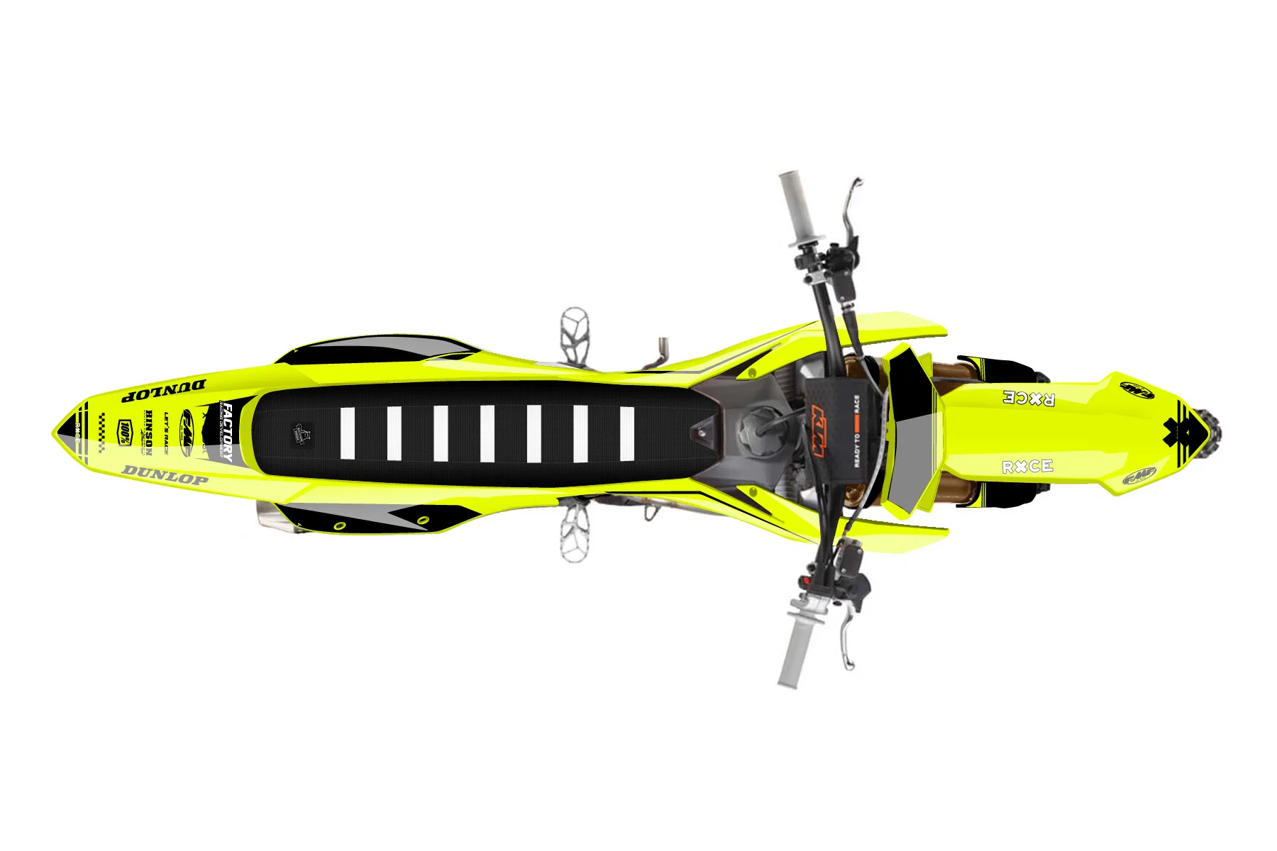 «Loose Neon» — готовый комплект графики серии Untucked для KTM MX Graphic Kit KTM SX-F 250 2023. В комплекте: графика на бак и боковые облицовки, крылья (переднее и заднее), передний щиток, номерные таблички, защита вилки. Материал: ПВХ-винил 80 мкр с холодной ламинацией 300 мкр, общая толщина 380 мкр; покрытие глянцевое или матовое на выбор. Устойчив к UV-излучению, воде, бензину и мойке высокого давления. Клей акриловый на сольвентной основе — постоянный, для гибких пластиков. На простых поверхностях монтируется без нагрева; для сложных изгибов рекомендуем фен. Этот пресет можно заказать как есть или взять за основу в конструкторе: поменять цвета, добавить стартовый номер и свой бренд. Производство — 3–5 рабочих дней, доставка по России СДЭКом или Почтой, по СНГ — курьерскими службами.