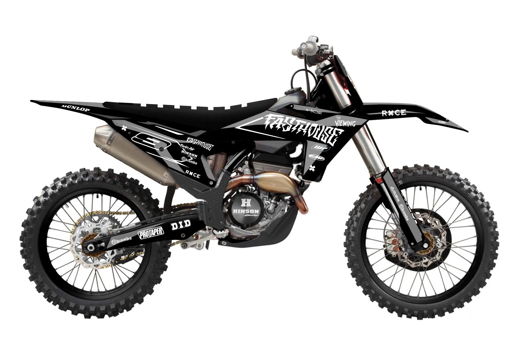 «Speedhouse» — готовый комплект графики серии Untucked для KTM MX Graphic Kit KTM SX-F 250 2023. В комплекте: графика на бак и боковые облицовки, крылья (переднее и заднее), передний щиток, номерные таблички, защита вилки. Материал: ПВХ-винил 80 мкр с холодной ламинацией 300 мкр, общая толщина 380 мкр; покрытие глянцевое или матовое на выбор. Устойчив к UV-излучению, воде, бензину и мойке высокого давления. Клей акриловый на сольвентной основе — постоянный, для гибких пластиков. На простых поверхностях монтируется без нагрева; для сложных изгибов рекомендуем фен. Этот пресет можно заказать как есть или взять за основу в конструкторе: поменять цвета, добавить стартовый номер и свой бренд. Производство — 3–5 рабочих дней, доставка по России СДЭКом или Почтой, по СНГ — курьерскими службами.