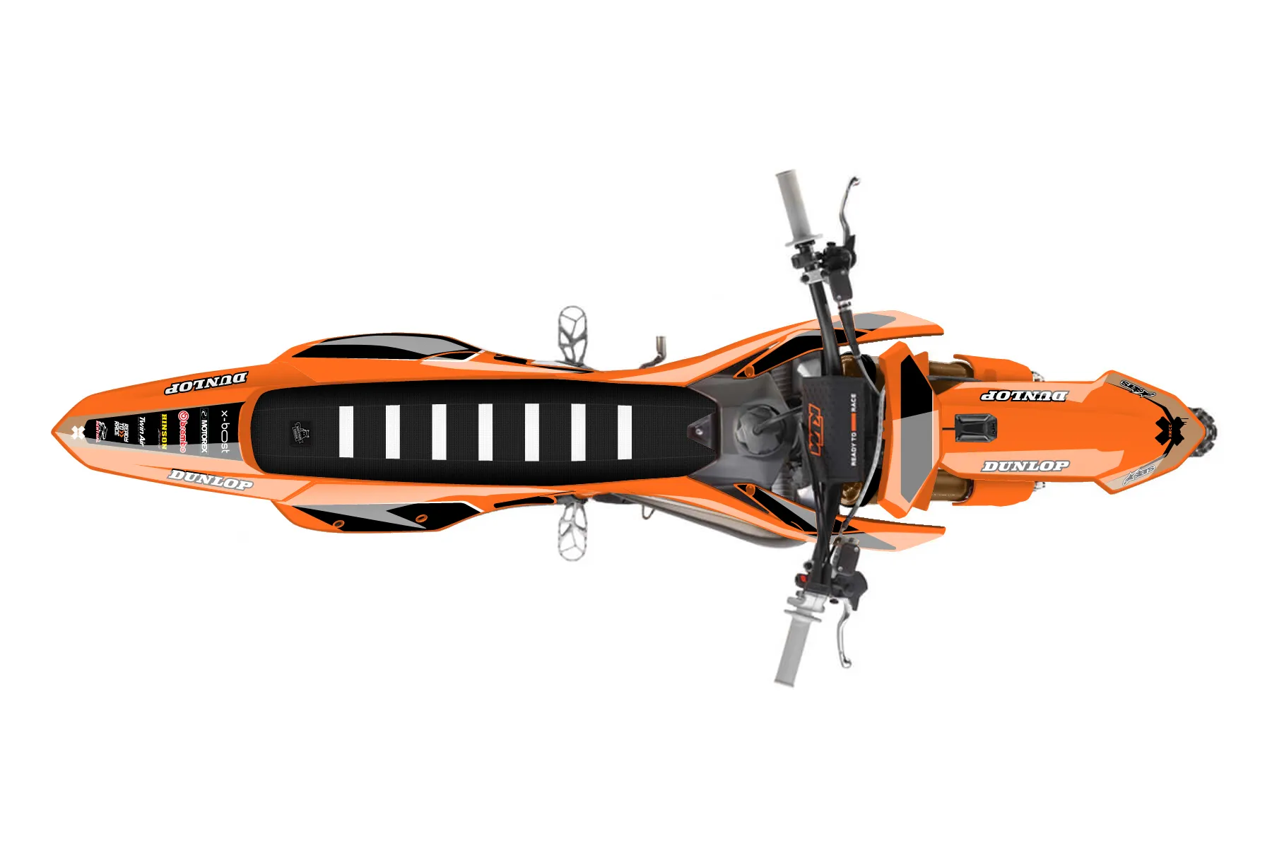 «918 jake stanislawski» — готовый комплект графики серии Flow для KTM MX Graphic Kit KTM SX-F 250 2025. В комплекте: графика на бак и боковые облицовки, крылья (переднее и заднее), передний щиток, номерные таблички, защита вилки. Материал: ПВХ-винил 80 мкр с холодной ламинацией 300 мкр, общая толщина 380 мкр; покрытие глянцевое или матовое на выбор. Устойчив к UV-излучению, воде, бензину и мойке высокого давления. Клей акриловый на сольвентной основе — постоянный, для гибких пластиков. На простых поверхностях монтируется без нагрева; для сложных изгибов рекомендуем фен. Этот пресет можно заказать как есть или взять за основу в конструкторе: поменять цвета, добавить стартовый номер и свой бренд. Производство — 3–5 рабочих дней, доставка по России СДЭКом или Почтой, по СНГ — курьерскими службами.