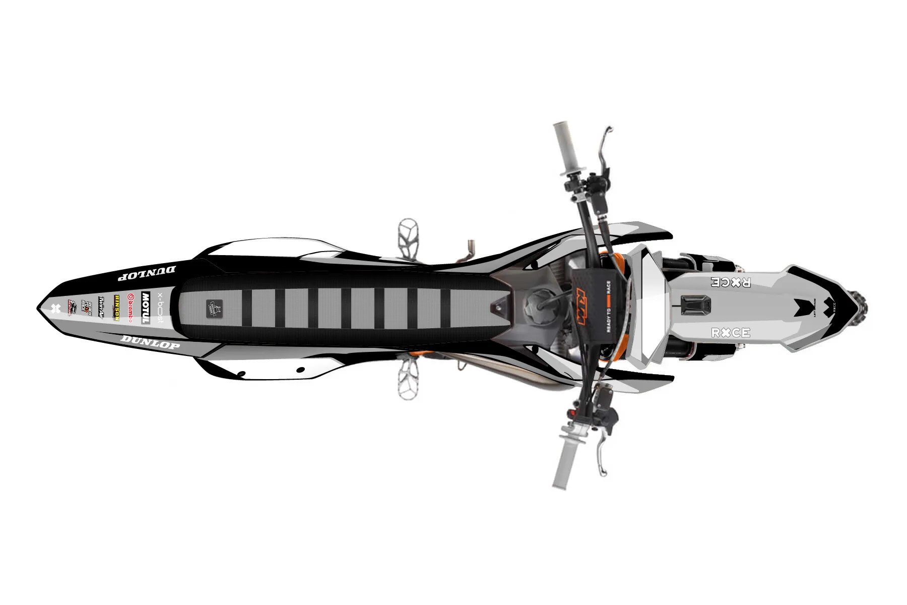 «Concepts» — готовый комплект графики серии Flow для KTM MX Graphic Kit KTM SX-F 250 2025. В комплекте: графика на бак и боковые облицовки, крылья (переднее и заднее), передний щиток, номерные таблички, защита вилки. Материал: ПВХ-винил 80 мкр с холодной ламинацией 300 мкр, общая толщина 380 мкр; покрытие глянцевое или матовое на выбор. Устойчив к UV-излучению, воде, бензину и мойке высокого давления. Клей акриловый на сольвентной основе — постоянный, для гибких пластиков. На простых поверхностях монтируется без нагрева; для сложных изгибов рекомендуем фен. Этот пресет можно заказать как есть или взять за основу в конструкторе: поменять цвета, добавить стартовый номер и свой бренд. Производство — 3–5 рабочих дней, доставка по России СДЭКом или Почтой, по СНГ — курьерскими службами.