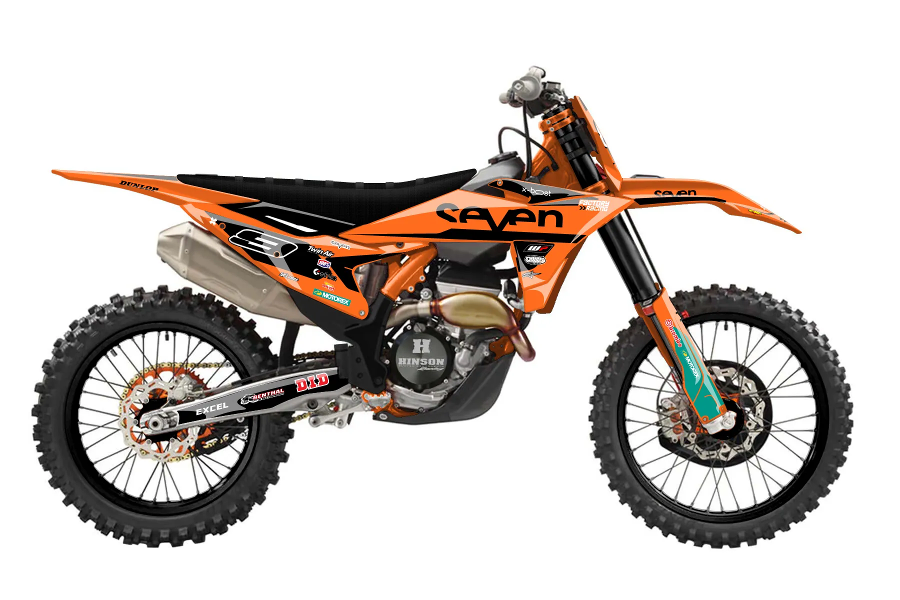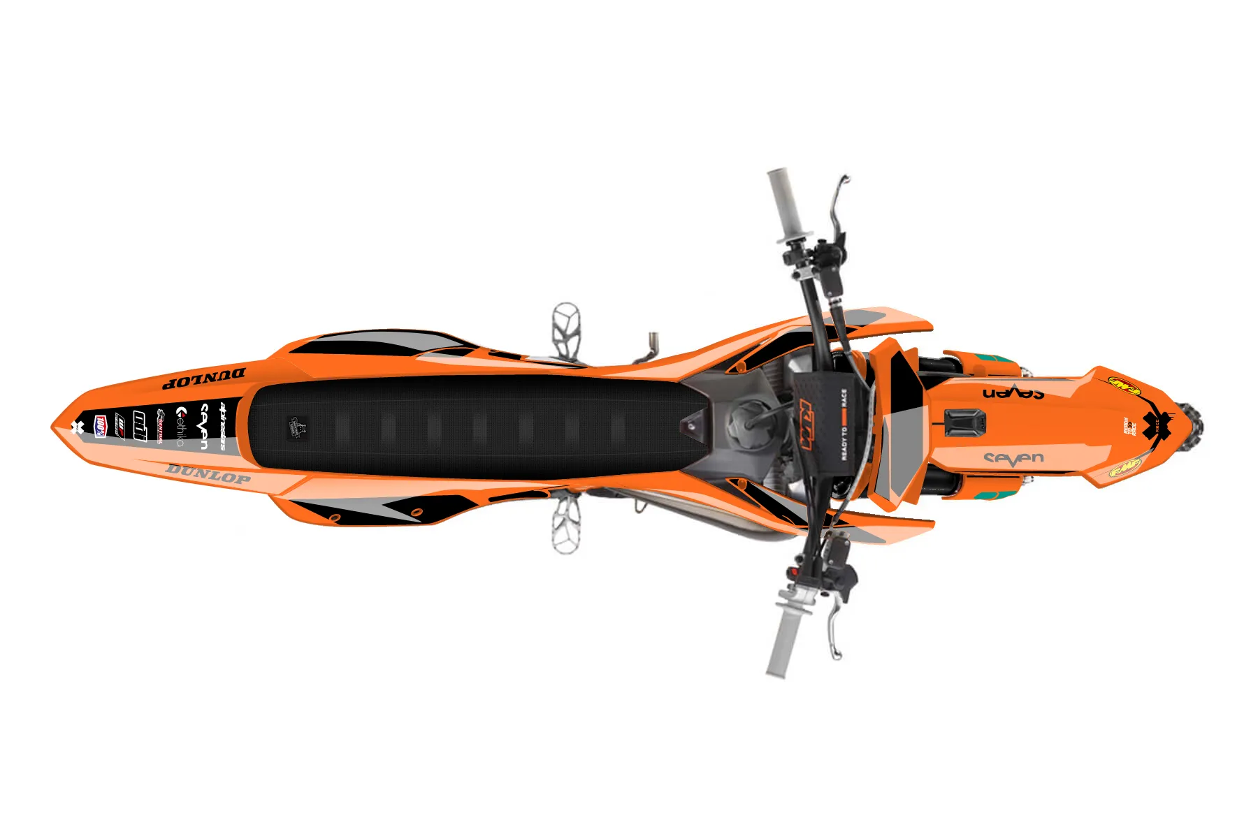 «seven» — готовый комплект графики серии Flow для KTM MX Graphic Kit KTM SX-F 250 2025. В комплекте: графика на бак и боковые облицовки, крылья (переднее и заднее), передний щиток, номерные таблички, защита вилки. Материал: ПВХ-винил 80 мкр с холодной ламинацией 300 мкр, общая толщина 380 мкр; покрытие глянцевое или матовое на выбор. Устойчив к UV-излучению, воде, бензину и мойке высокого давления. Клей акриловый на сольвентной основе — постоянный, для гибких пластиков. На простых поверхностях монтируется без нагрева; для сложных изгибов рекомендуем фен. Этот пресет можно заказать как есть или взять за основу в конструкторе: поменять цвета, добавить стартовый номер и свой бренд. Производство — 3–5 рабочих дней, доставка по России СДЭКом или Почтой, по СНГ — курьерскими службами.