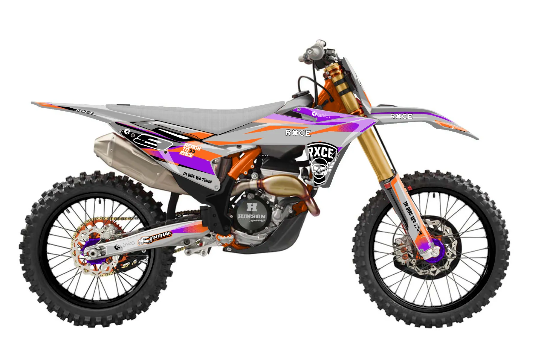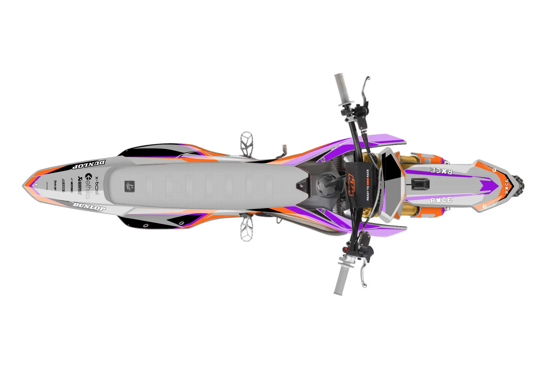 «Emphatic» — готовый комплект графики серии Fusion для KTM MX Graphic Kit KTM SX-F 250 2025. В комплекте: графика на бак и боковые облицовки, крылья (переднее и заднее), передний щиток, номерные таблички, защита вилки. Материал: ПВХ-винил 80 мкр с холодной ламинацией 300 мкр, общая толщина 380 мкр; покрытие глянцевое или матовое на выбор. Устойчив к UV-излучению, воде, бензину и мойке высокого давления. Клей акриловый на сольвентной основе — постоянный, для гибких пластиков. На простых поверхностях монтируется без нагрева; для сложных изгибов рекомендуем фен. Этот пресет можно заказать как есть или взять за основу в конструкторе: поменять цвета, добавить стартовый номер и свой бренд. Производство — 3–5 рабочих дней, доставка по России СДЭКом или Почтой, по СНГ — курьерскими службами.