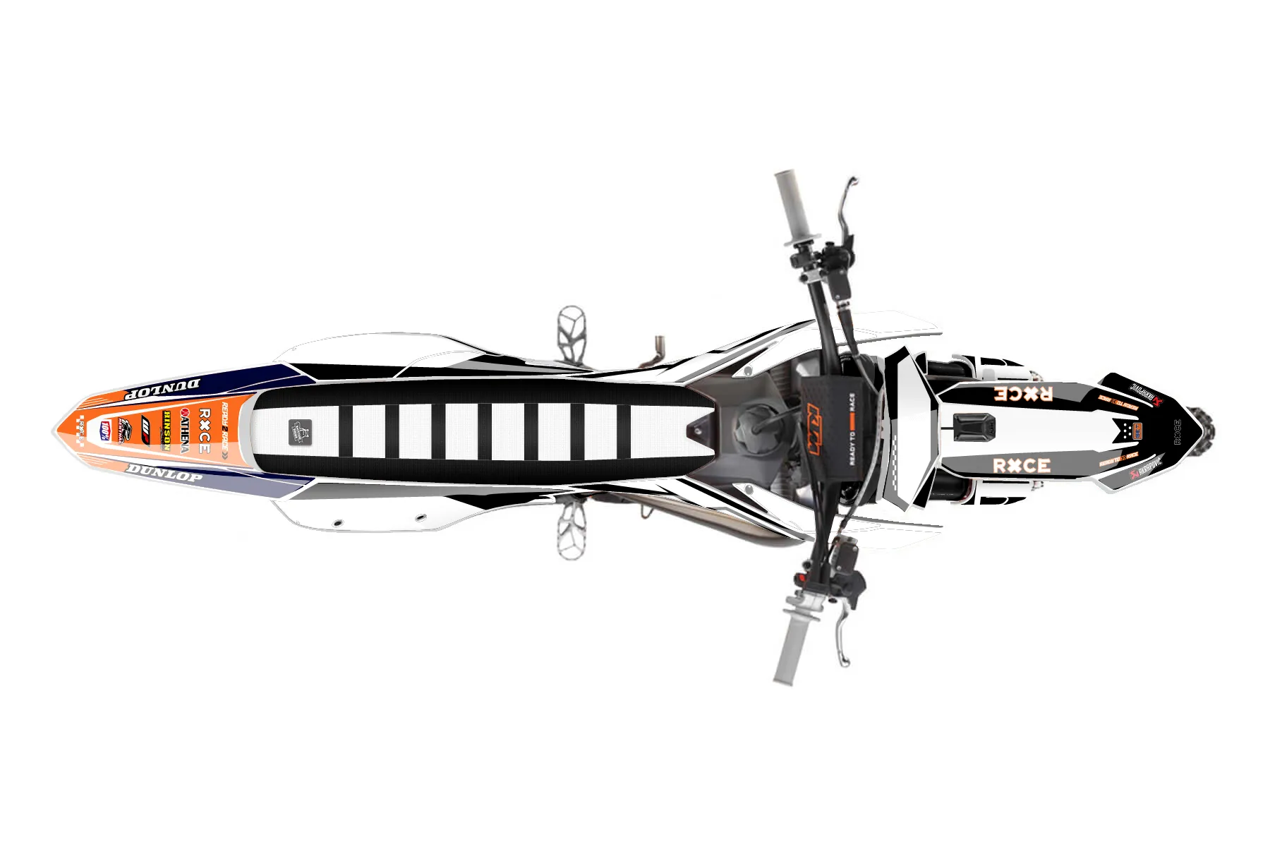 «250 new graphics» — готовый комплект графики серии Staple для KTM MX Graphic Kit KTM SX-F 250 2025. В комплекте: графика на бак и боковые облицовки, крылья (переднее и заднее), передний щиток, номерные таблички, защита вилки. Материал: ПВХ-винил 80 мкр с холодной ламинацией 300 мкр, общая толщина 380 мкр; покрытие глянцевое или матовое на выбор. Устойчив к UV-излучению, воде, бензину и мойке высокого давления. Клей акриловый на сольвентной основе — постоянный, для гибких пластиков. На простых поверхностях монтируется без нагрева; для сложных изгибов рекомендуем фен. Этот пресет можно заказать как есть или взять за основу в конструкторе: поменять цвета, добавить стартовый номер и свой бренд. Производство — 3–5 рабочих дней, доставка по России СДЭКом или Почтой, по СНГ — курьерскими службами.