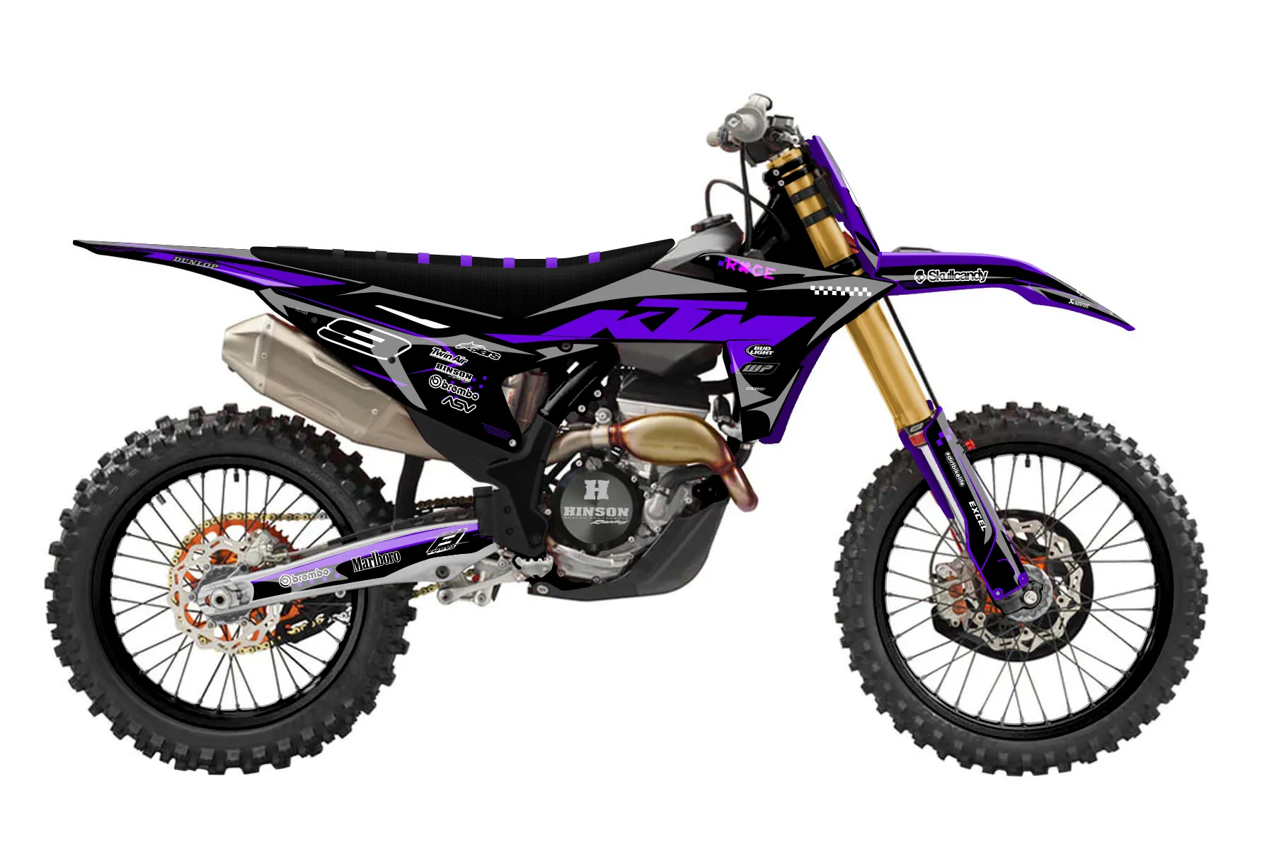 «finished» — готовый комплект графики серии Staple для KTM MX Graphic Kit KTM SX-F 250 2025. В комплекте: графика на бак и боковые облицовки, крылья (переднее и заднее), передний щиток, номерные таблички, защита вилки. Материал: ПВХ-винил 80 мкр с холодной ламинацией 300 мкр, общая толщина 380 мкр; покрытие глянцевое или матовое на выбор. Устойчив к UV-излучению, воде, бензину и мойке высокого давления. Клей акриловый на сольвентной основе — постоянный, для гибких пластиков. На простых поверхностях монтируется без нагрева; для сложных изгибов рекомендуем фен. Этот пресет можно заказать как есть или взять за основу в конструкторе: поменять цвета, добавить стартовый номер и свой бренд. Производство — 3–5 рабочих дней, доставка по России СДЭКом или Почтой, по СНГ — курьерскими службами.