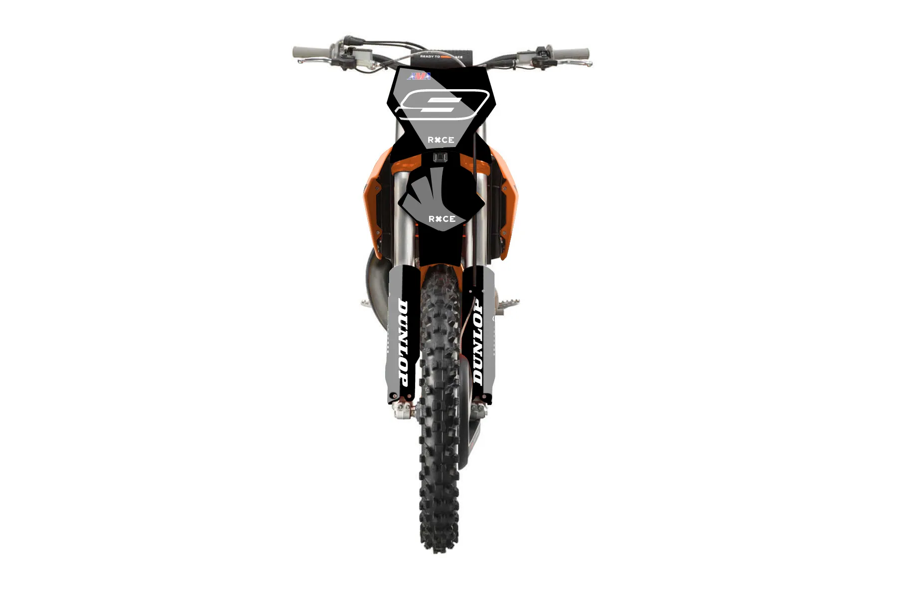 «2024 Kim 250 black/orange need to add more» — готовый комплект графики серии Untucked для KTM MX Graphic Kit KTM SX-F 250 2025. В комплекте: графика на бак и боковые облицовки, крылья (переднее и заднее), передний щиток, номерные таблички, защита вилки. Материал: ПВХ-винил 80 мкр с холодной ламинацией 300 мкр, общая толщина 380 мкр; покрытие глянцевое или матовое на выбор. Устойчив к UV-излучению, воде, бензину и мойке высокого давления. Клей акриловый на сольвентной основе — постоянный, для гибких пластиков. На простых поверхностях монтируется без нагрева; для сложных изгибов рекомендуем фен. Этот пресет можно заказать как есть или взять за основу в конструкторе: поменять цвета, добавить стартовый номер и свой бренд. Производство — 3–5 рабочих дней, доставка по России СДЭКом или Почтой, по СНГ — курьерскими службами.