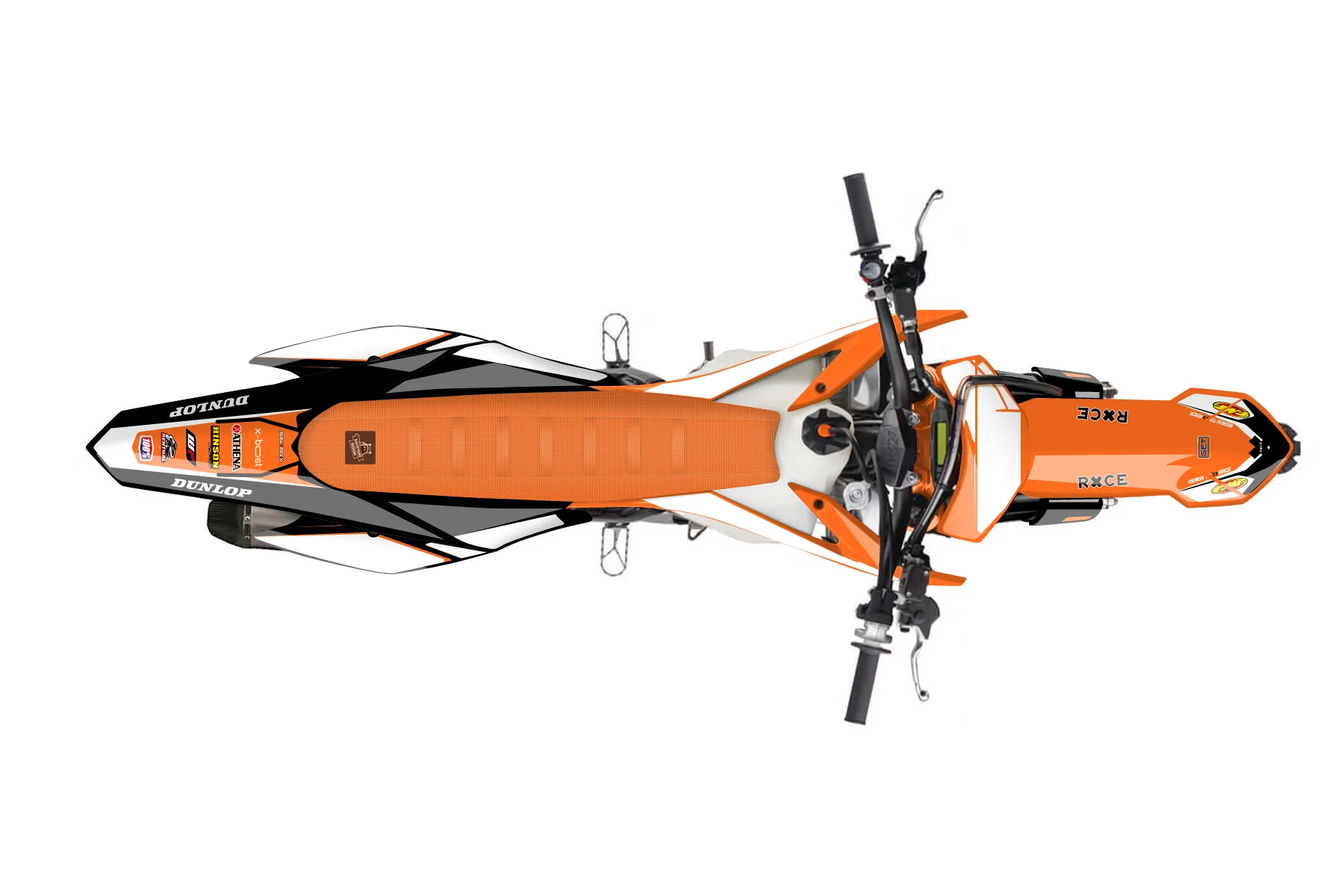 «Predicted» — готовый комплект графики серии Flow для KTM MX Graphic Kit KTM SX-F 350 2013. В комплекте: графика на бак и боковые облицовки, крылья (переднее и заднее), передний щиток, номерные таблички, защита вилки. Материал: ПВХ-винил 80 мкр с холодной ламинацией 300 мкр, общая толщина 380 мкр; покрытие глянцевое или матовое на выбор. Устойчив к UV-излучению, воде, бензину и мойке высокого давления. Клей акриловый на сольвентной основе — постоянный, для гибких пластиков. На простых поверхностях монтируется без нагрева; для сложных изгибов рекомендуем фен. Этот пресет можно заказать как есть или взять за основу в конструкторе: поменять цвета, добавить стартовый номер и свой бренд. Производство — 3–5 рабочих дней, доставка по России СДЭКом или Почтой, по СНГ — курьерскими службами.