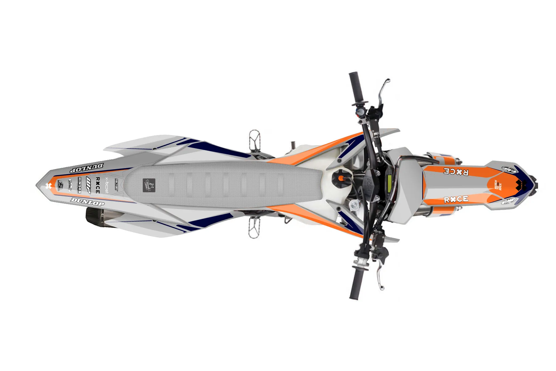«Ride» — готовый комплект графики серии Flow для KTM MX Graphic Kit KTM SX-F 350 2013. В комплекте: графика на бак и боковые облицовки, крылья (переднее и заднее), передний щиток, номерные таблички, защита вилки. Материал: ПВХ-винил 80 мкр с холодной ламинацией 300 мкр, общая толщина 380 мкр; покрытие глянцевое или матовое на выбор. Устойчив к UV-излучению, воде, бензину и мойке высокого давления. Клей акриловый на сольвентной основе — постоянный, для гибких пластиков. На простых поверхностях монтируется без нагрева; для сложных изгибов рекомендуем фен. Этот пресет можно заказать как есть или взять за основу в конструкторе: поменять цвета, добавить стартовый номер и свой бренд. Производство — 3–5 рабочих дней, доставка по России СДЭКом или Почтой, по СНГ — курьерскими службами.