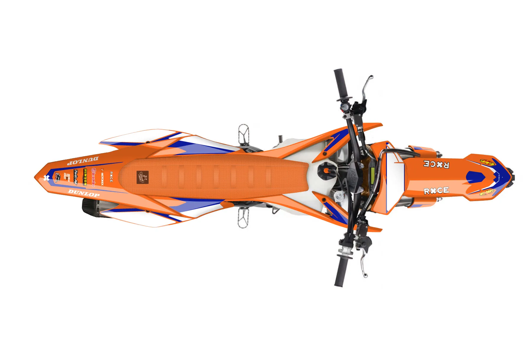 «Unique» — готовый комплект графики серии Flow для KTM MX Graphic Kit KTM SX-F 350 2013. В комплекте: графика на бак и боковые облицовки, крылья (переднее и заднее), передний щиток, номерные таблички, защита вилки. Материал: ПВХ-винил 80 мкр с холодной ламинацией 300 мкр, общая толщина 380 мкр; покрытие глянцевое или матовое на выбор. Устойчив к UV-излучению, воде, бензину и мойке высокого давления. Клей акриловый на сольвентной основе — постоянный, для гибких пластиков. На простых поверхностях монтируется без нагрева; для сложных изгибов рекомендуем фен. Этот пресет можно заказать как есть или взять за основу в конструкторе: поменять цвета, добавить стартовый номер и свой бренд. Производство — 3–5 рабочих дней, доставка по России СДЭКом или Почтой, по СНГ — курьерскими службами.