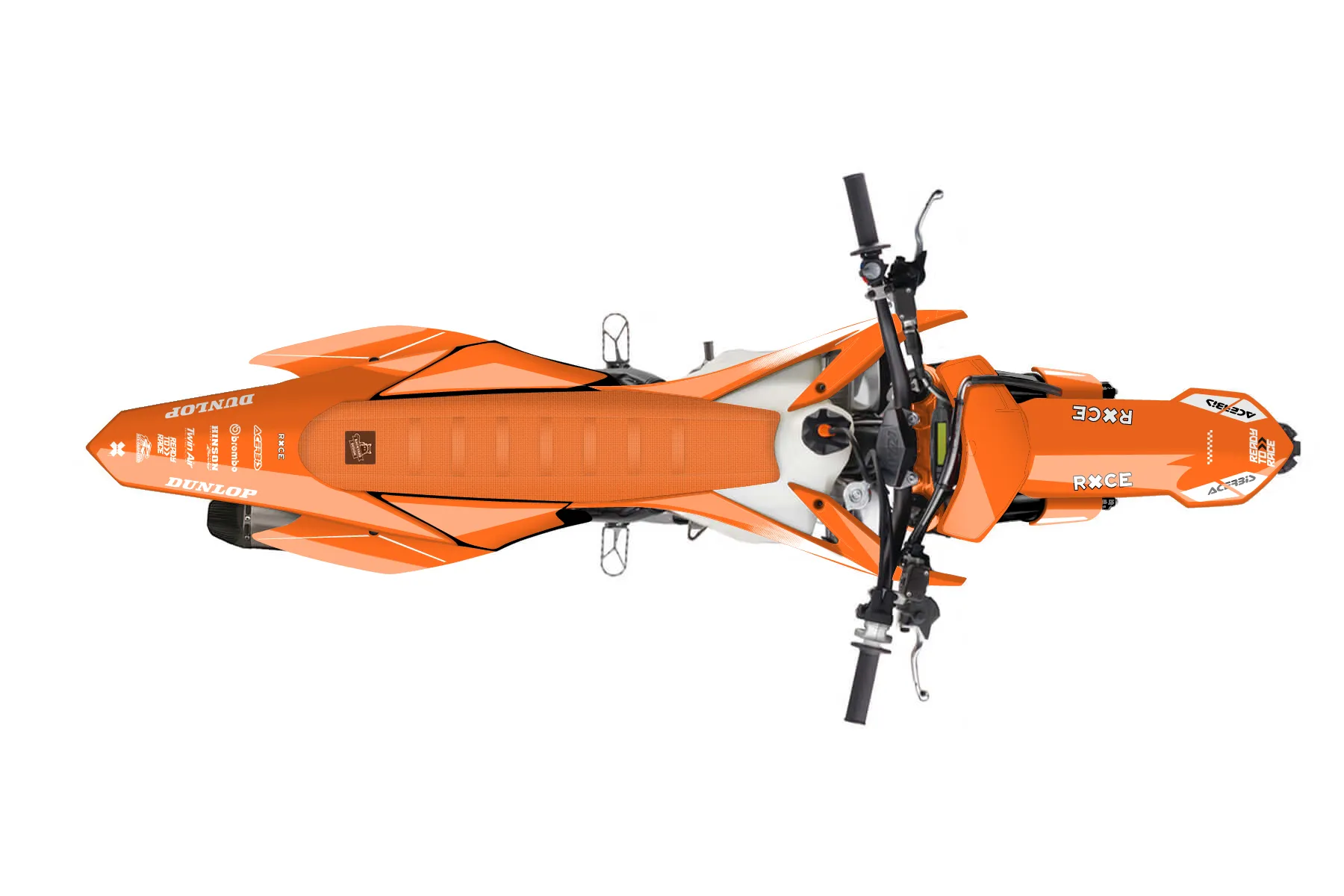 «350sfx» — готовый комплект графики серии Maverick для KTM MX Graphic Kit KTM SX-F 350 2013. В комплекте: графика на бак и боковые облицовки, крылья (переднее и заднее), передний щиток, номерные таблички, защита вилки. Материал: ПВХ-винил 80 мкр с холодной ламинацией 300 мкр, общая толщина 380 мкр; покрытие глянцевое или матовое на выбор. Устойчив к UV-излучению, воде, бензину и мойке высокого давления. Клей акриловый на сольвентной основе — постоянный, для гибких пластиков. На простых поверхностях монтируется без нагрева; для сложных изгибов рекомендуем фен. Этот пресет можно заказать как есть или взять за основу в конструкторе: поменять цвета, добавить стартовый номер и свой бренд. Производство — 3–5 рабочих дней, доставка по России СДЭКом или Почтой, по СНГ — курьерскими службами.